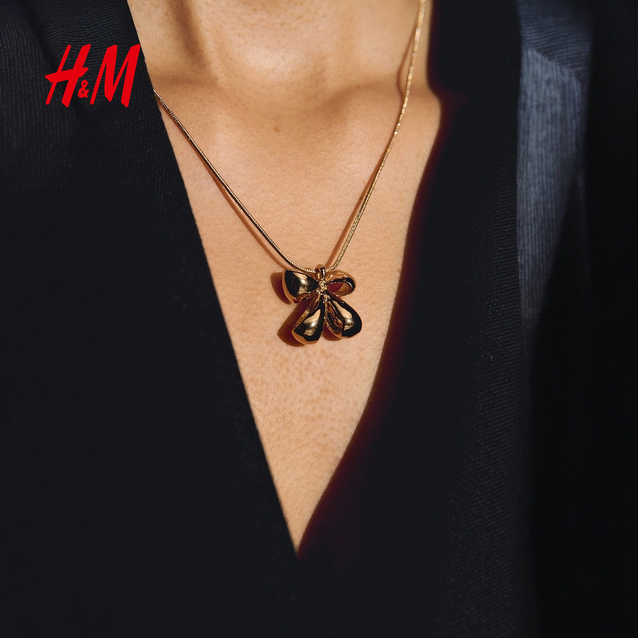 HM女士饰品项链2025年冬季新款时尚潮流蝴蝶结吊坠项链1302823