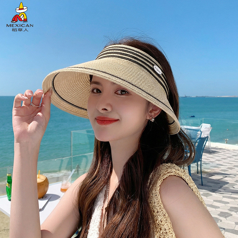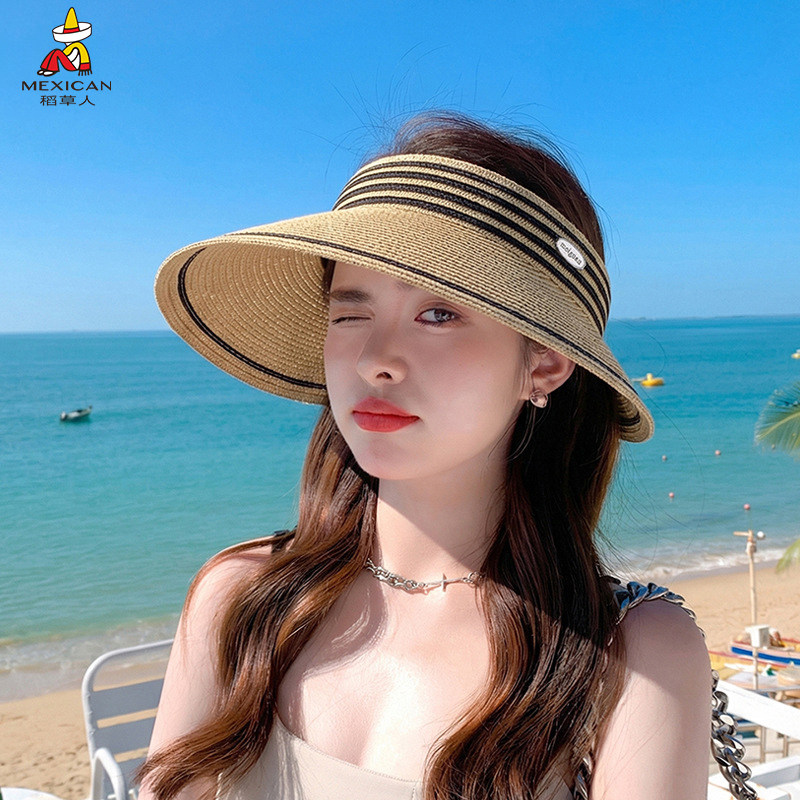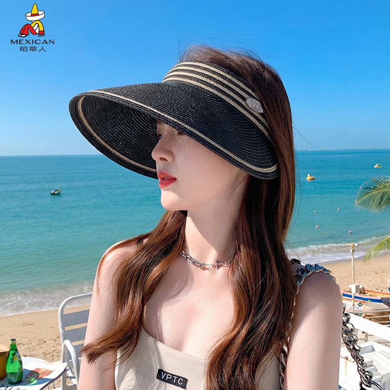 稻草人夏季海边空顶草帽女防晒透气遮阳大檐帽显脸小出游太阳帽