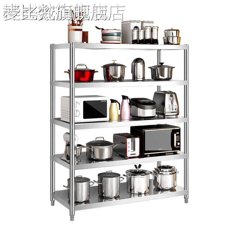麦比梵五层加厚不锈钢厨房置物架多层落地架子储物家用货架橱柜杂物收纳床笠拉车
