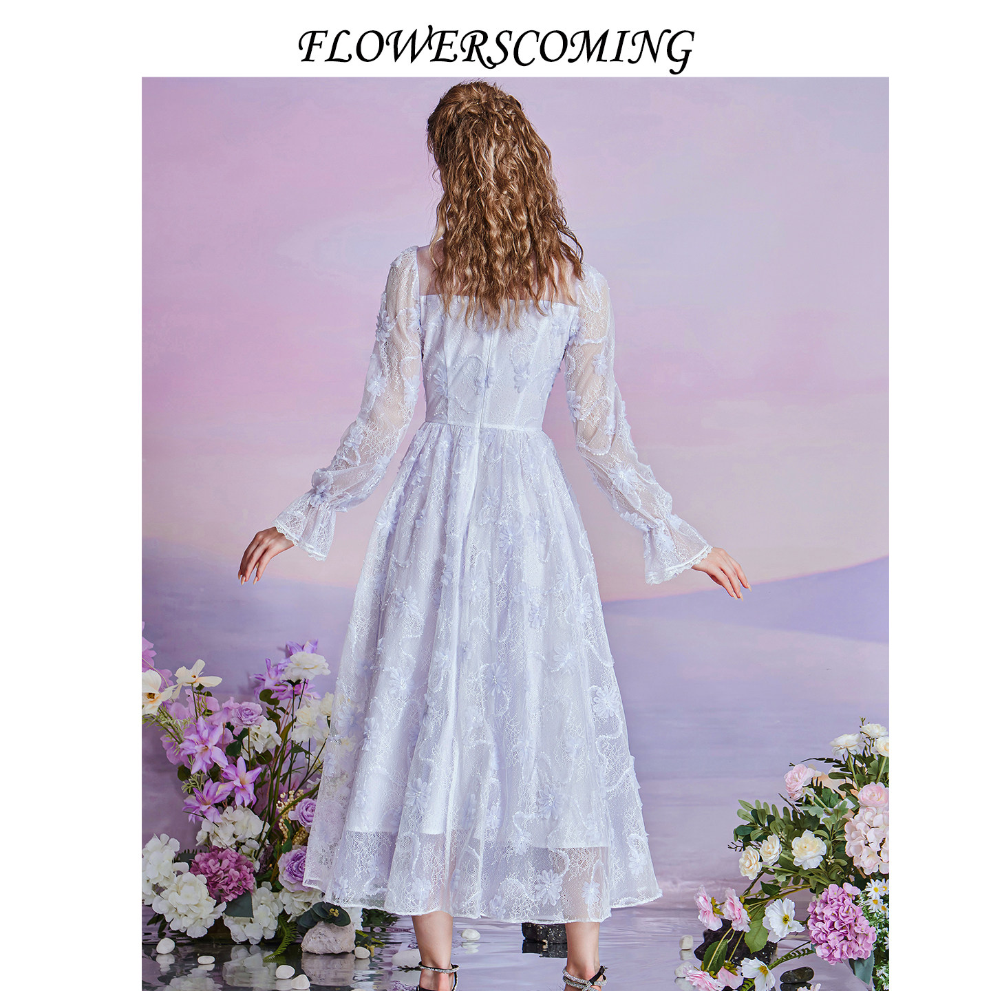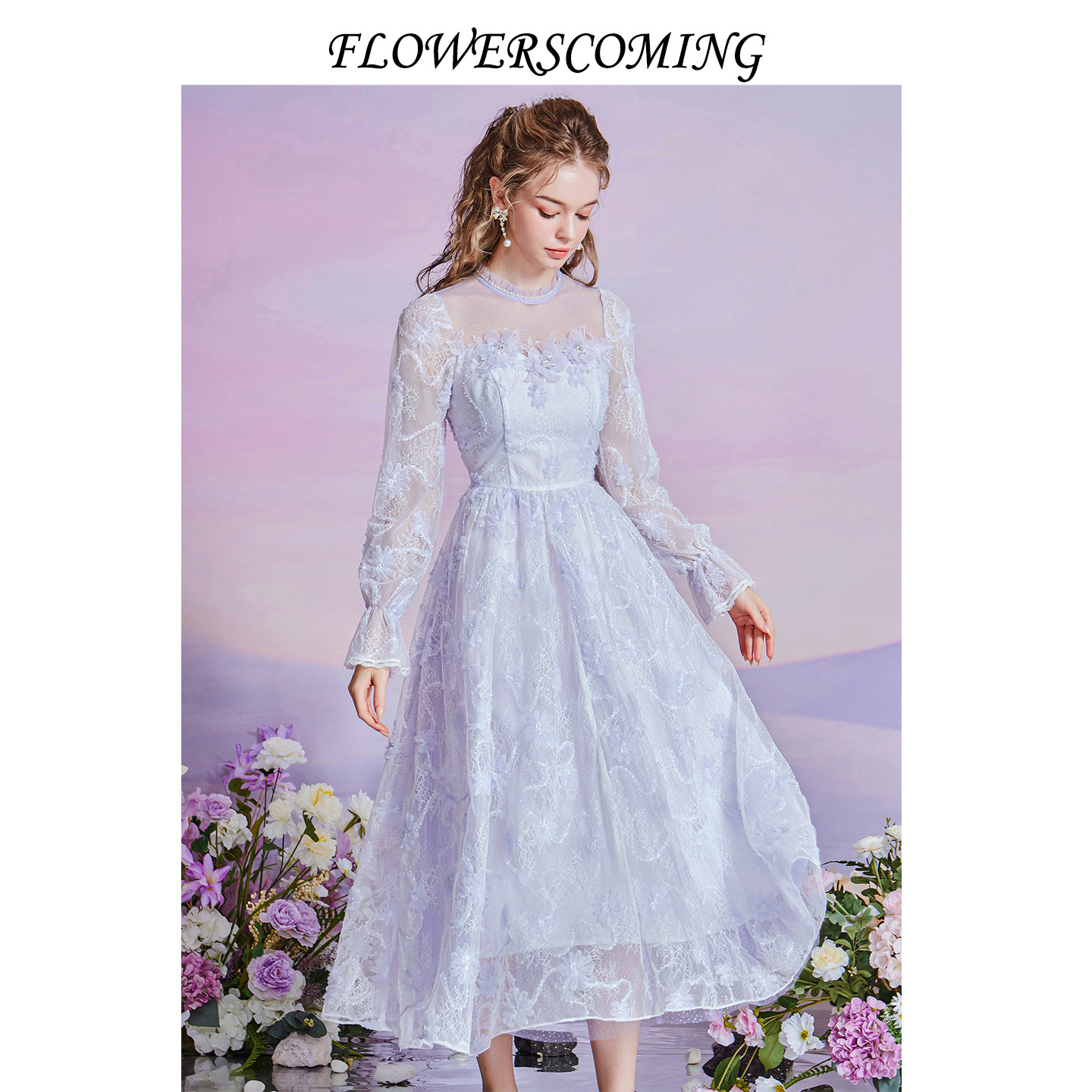 花儿开了2025秋季新款紫色气质修身中长款连衣裙仙女晚礼服公主裙