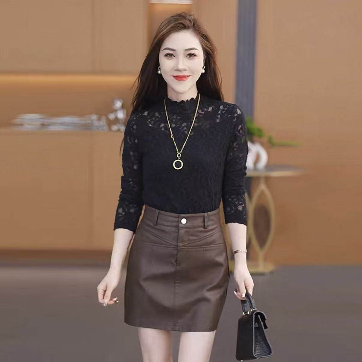 秋冬蕾丝打底衫女新款修身长袖半高领性感上衣配小香风内搭蕾丝衫
