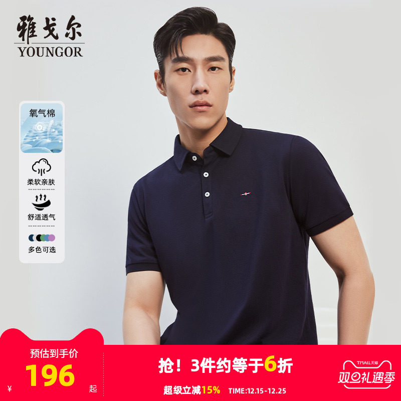 【氧气棉】雅戈尔夏男士短袖T恤商务休闲翻领大码宽松纯色POLO衫