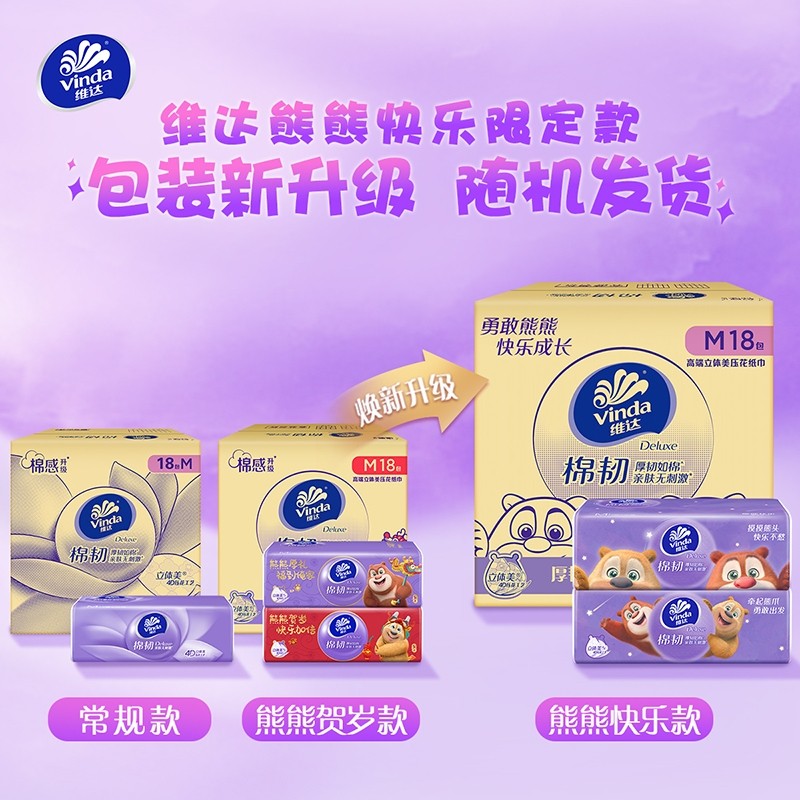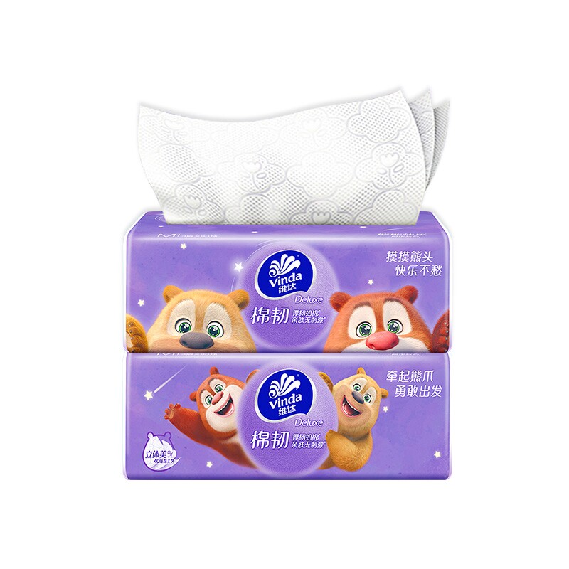 维达抽纸熊出没棉韧压花M码大包90抽家用面巾纸餐巾纸实惠装