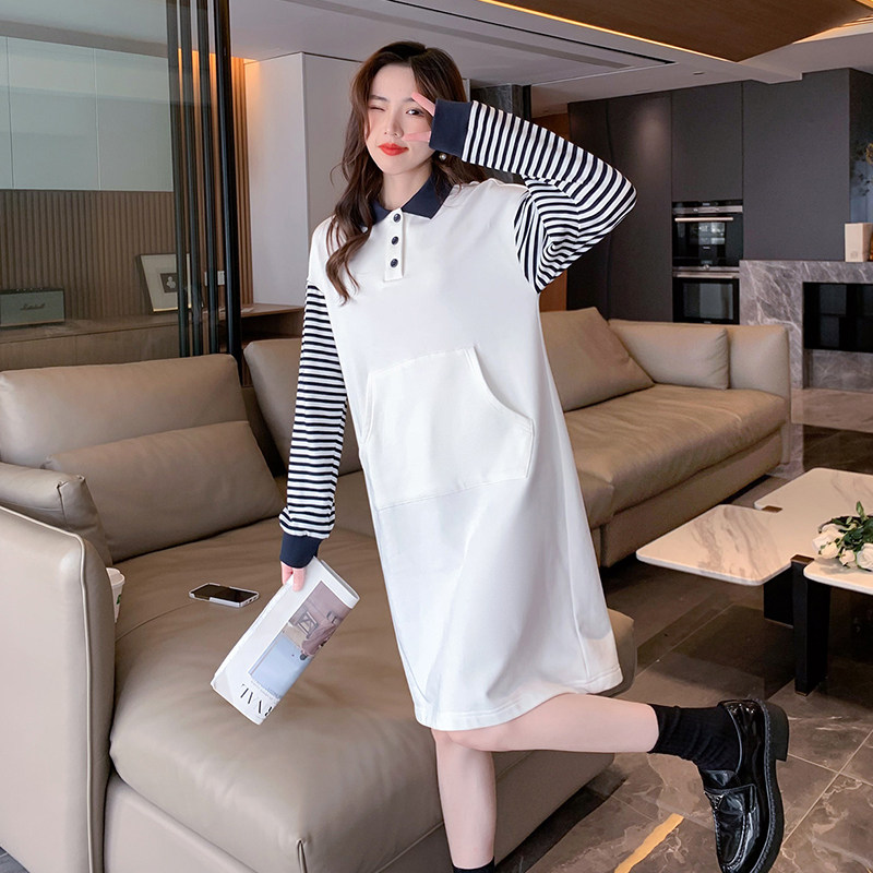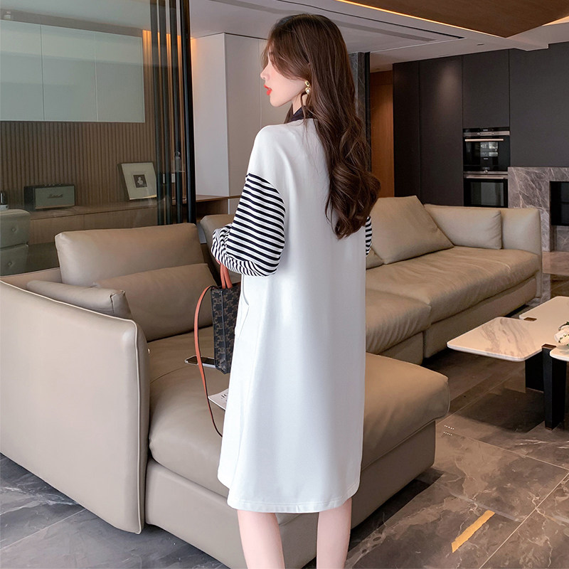 唐狮卫衣连衣裙女士法式气质条纹长袖裙子春秋流行穿搭女装POLO裙