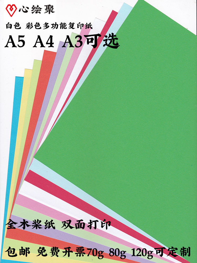 心绘聚加厚打印纸A4白纸A5复印纸70g单包500张办公用品8包草稿纸整箱批发80g彩色可定制120g纸张财务企业单位