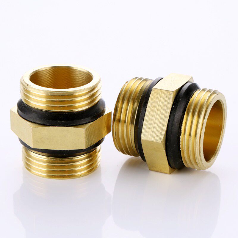 免生料带黄铜对丝直接密封垫圈46分1寸双外丝牙水管接头配件全铜