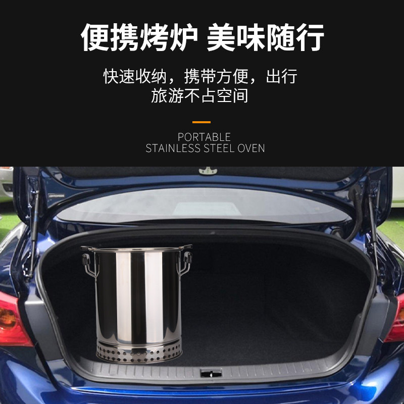 无烟烧烤炉家用烧烤架户外炉子烤肉串不锈钢桶吊炉圆形方便携带