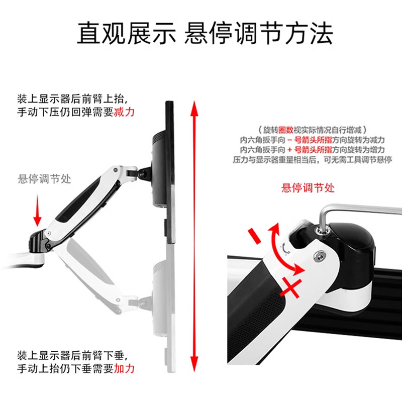 悠视显示器支架铝合金壁挂工业办公通用屏风支架万向旋转折叠挂架
