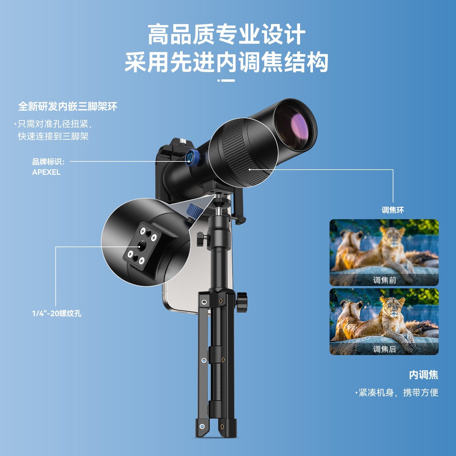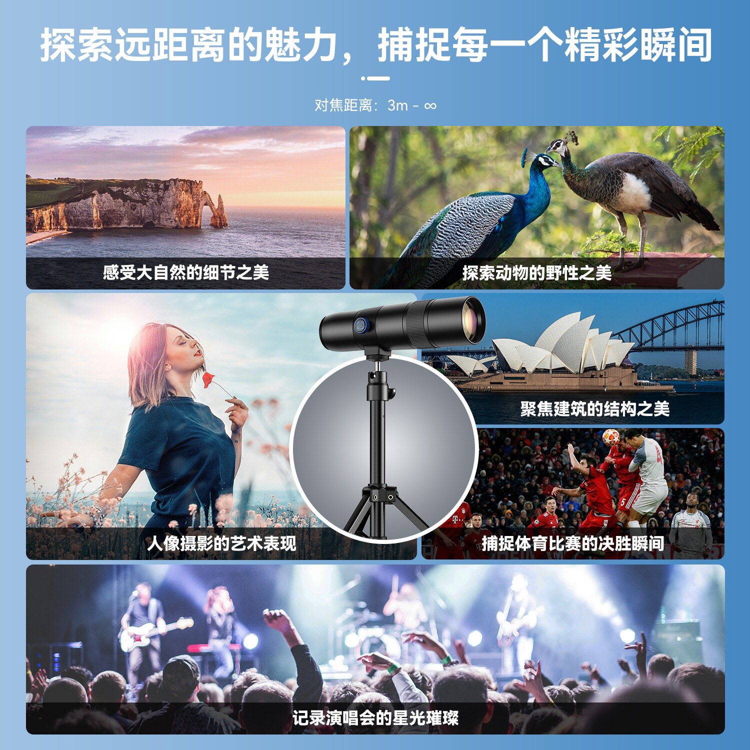 壳比2025款手机长焦镜头400mm高清望远镜专业大光圈人像演唱会拍摄神器30x外接摄影头适用于iphone苹果华为