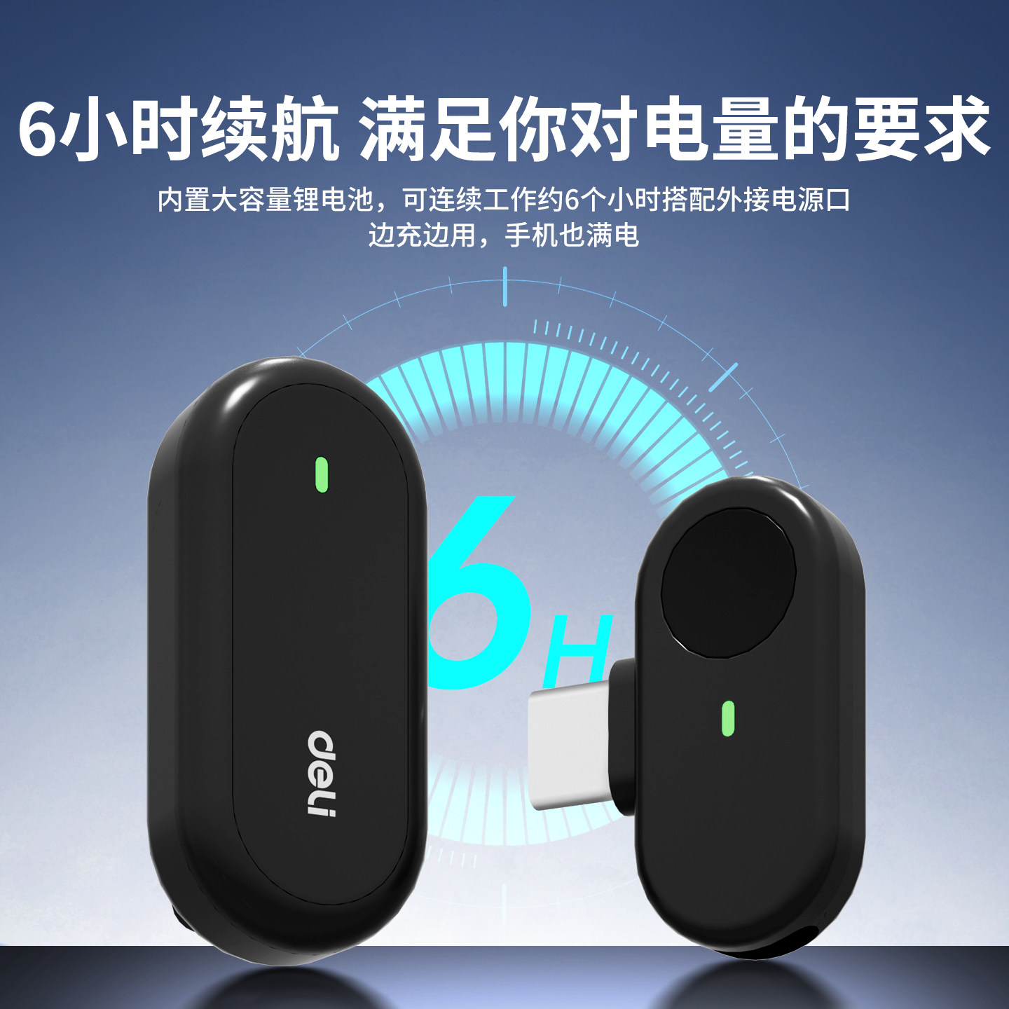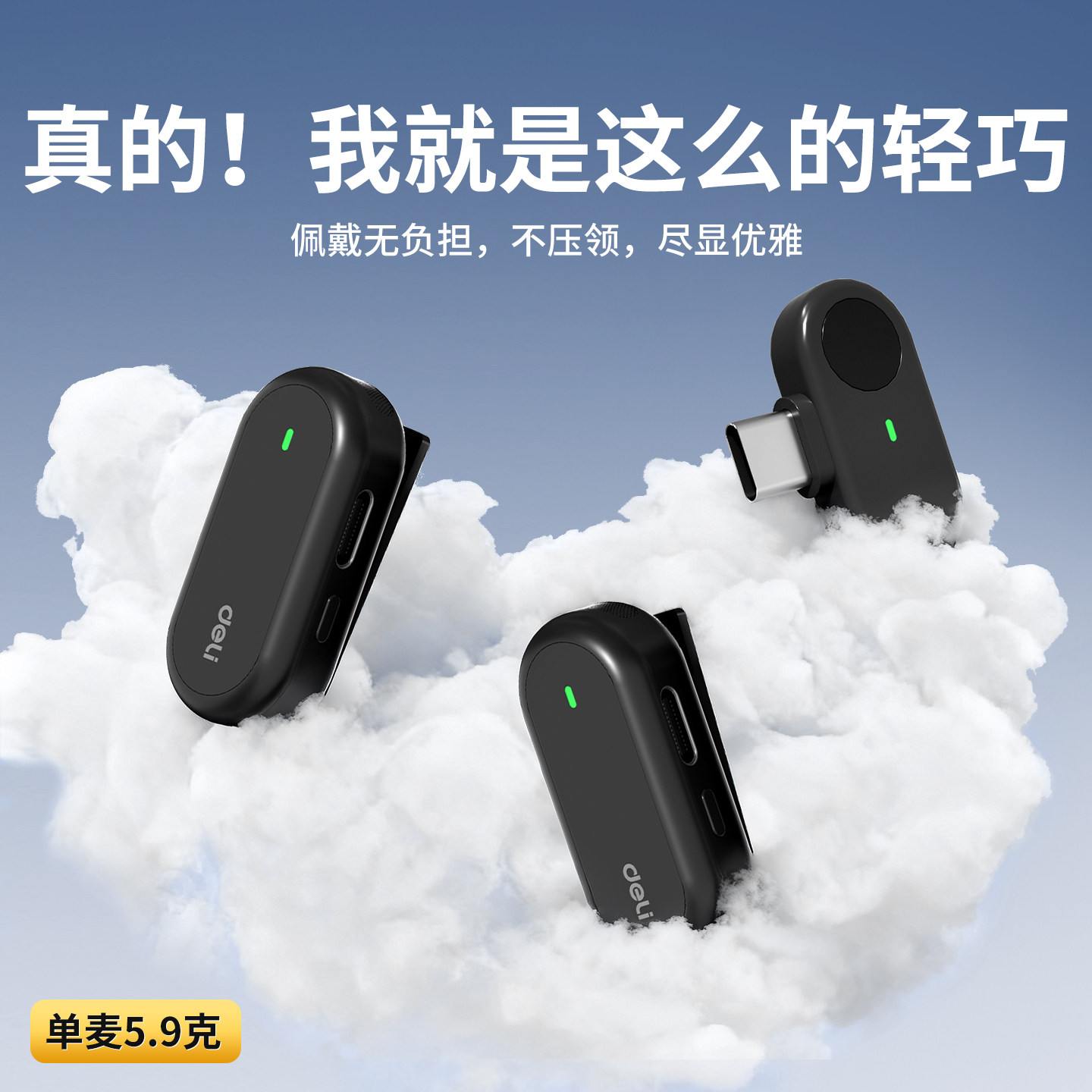 得力无线麦克风领夹式收音麦器直播主播录音设备夹领式手机拍视频