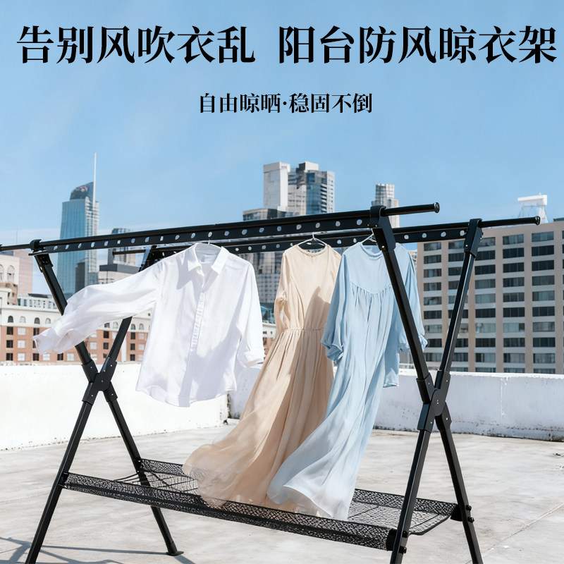晾衣架落地折叠室内家用阳台室外抗风不锈钢凉伸缩式杆晒被子神器