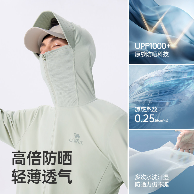 骆驼男装防晒衣男夏季2026原纱耐穿凉感防紫外线连帽皮肤衣男