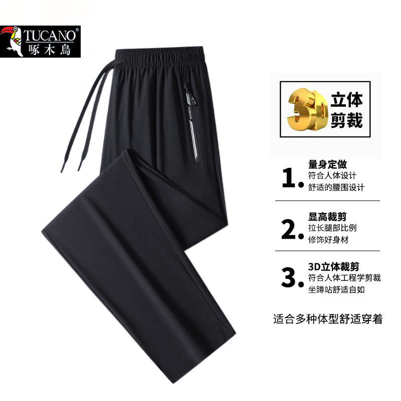 啄木鸟冰丝裤2026新夏季薄款速干裤凉感宽松束脚裤休闲运动裤子男