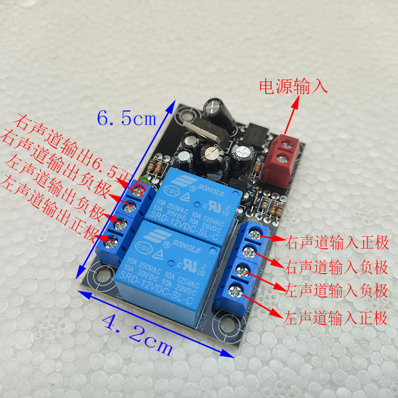 12V功放防冲击喇叭保护板双继电器 带开机延时和直流保护成品板
