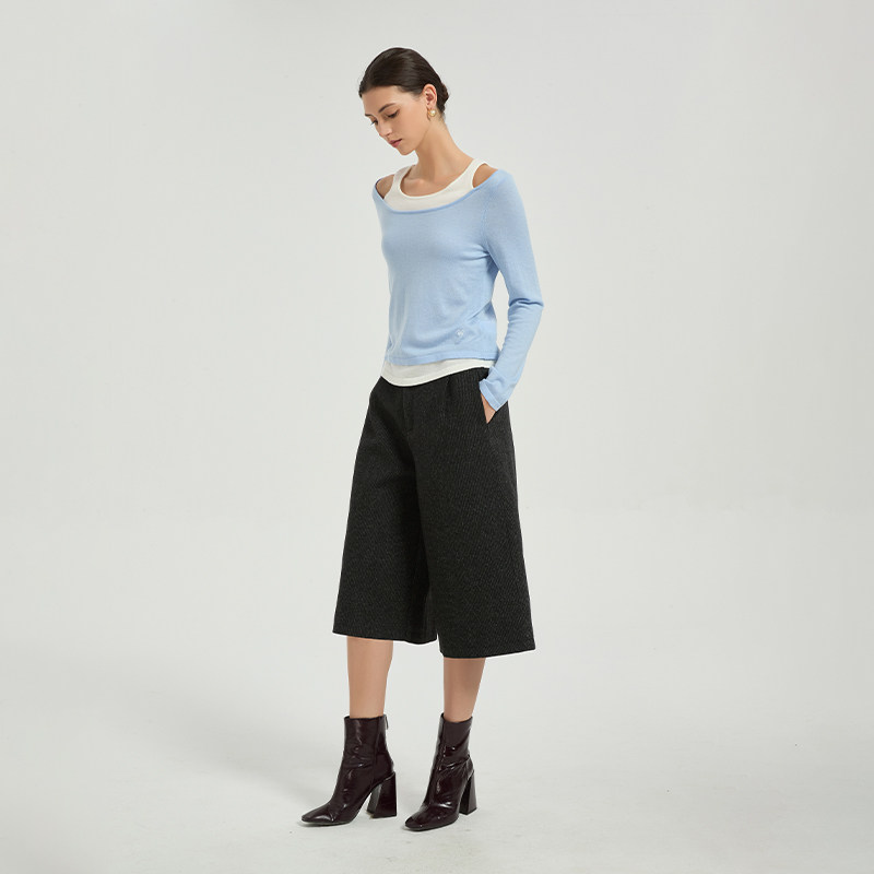 Petit Bari高阶质感暗纹格纹羊毛混纺七分裤女 秋冬