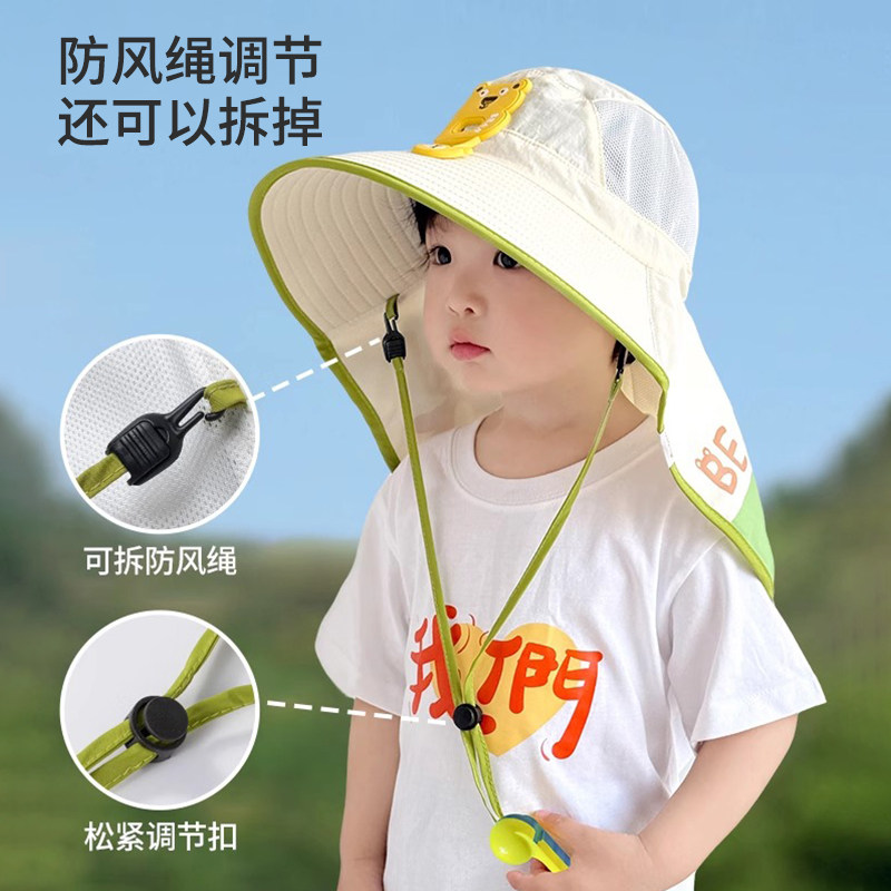 儿童防晒帽宝宝遮阳帽防紫外线男孩女童太阳帽大帽檐夏季渔夫帽子