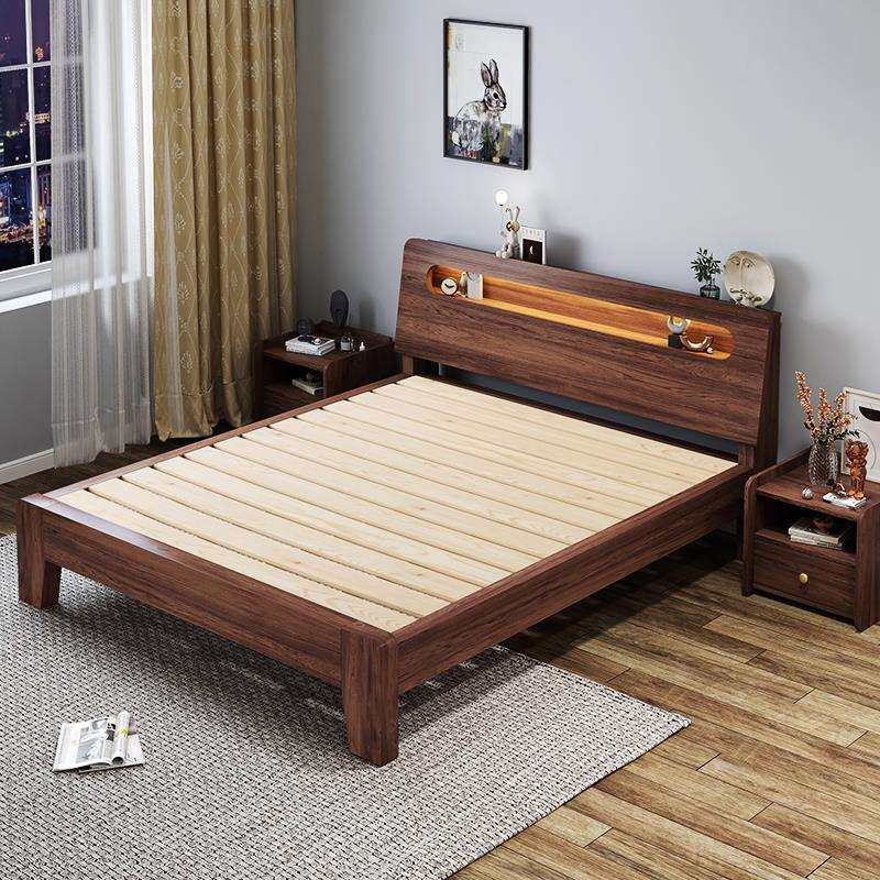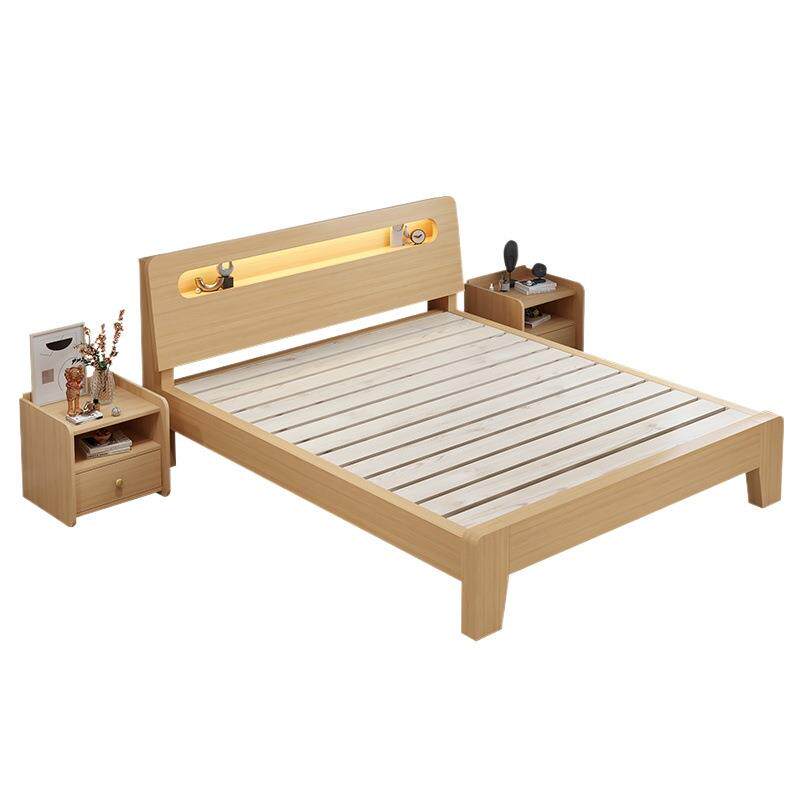 批实木床现代简约家用主卧1.5米1.8m双人床经济型出租房单人床架1