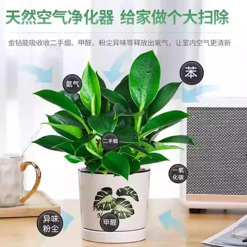 金钻盆栽绿植室内盆栽绿萝吸甲醛水培花卉办公室四季常绿多规格
