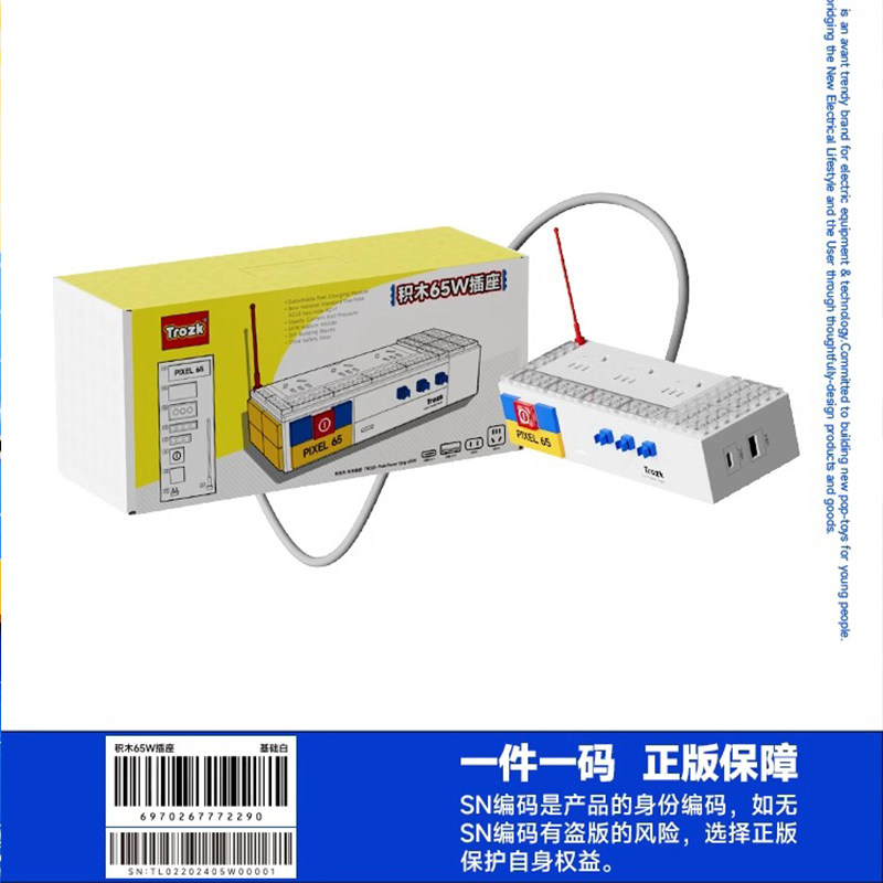 Trozk特洛克积木插排拖线板65w充电器插座排插接线板氮化镓适配器