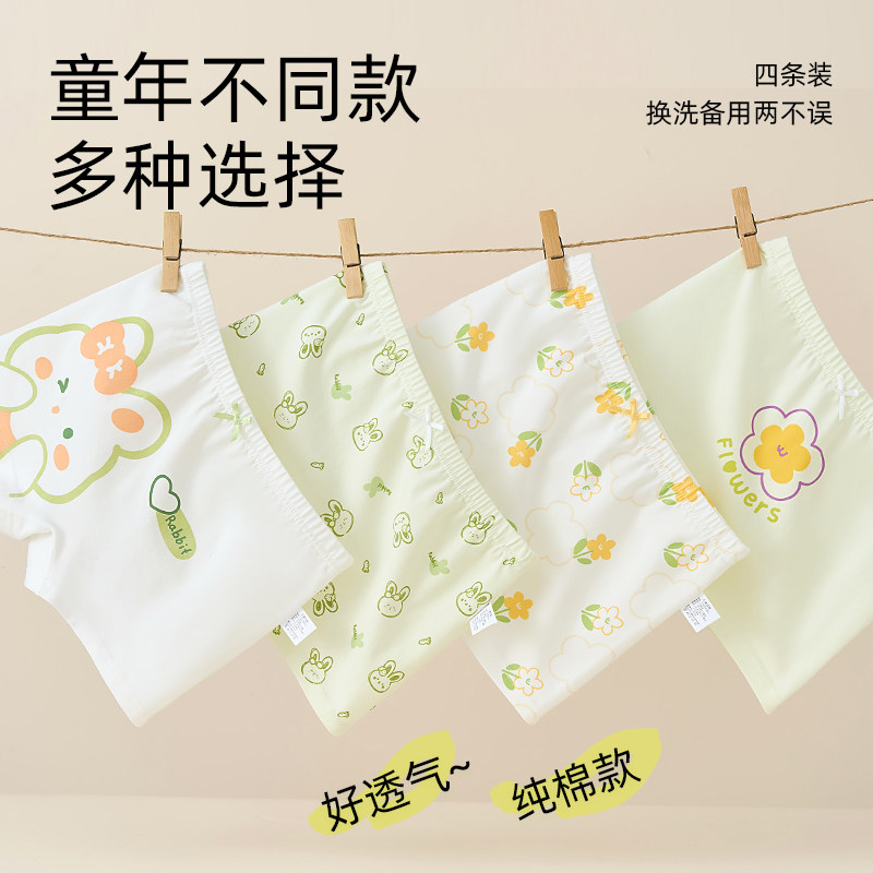 米乐鱼儿童内裤女童四角短裤宝宝透气平角裤衩男童a类纯棉裤衩