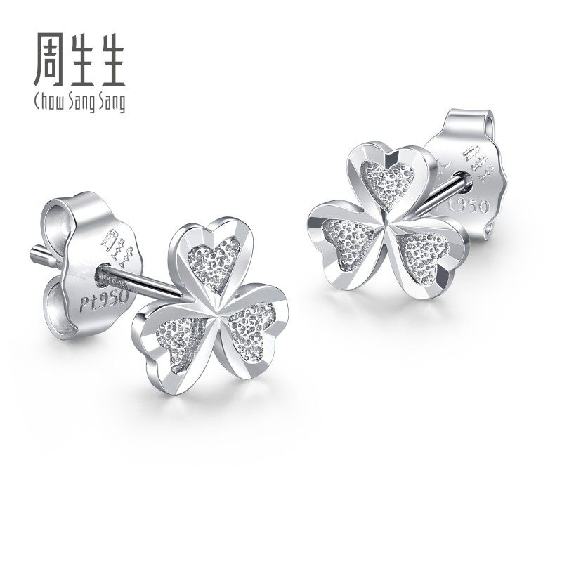 周生生Pt950铂金耳环爱心三叶草铂金耳钉37228E