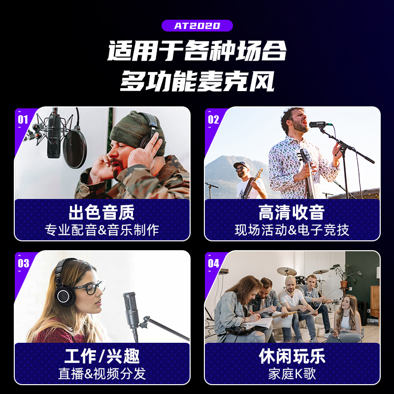 铁三角AT2020CP电容麦克风话筒电脑K歌录音主播专业直播旗舰店