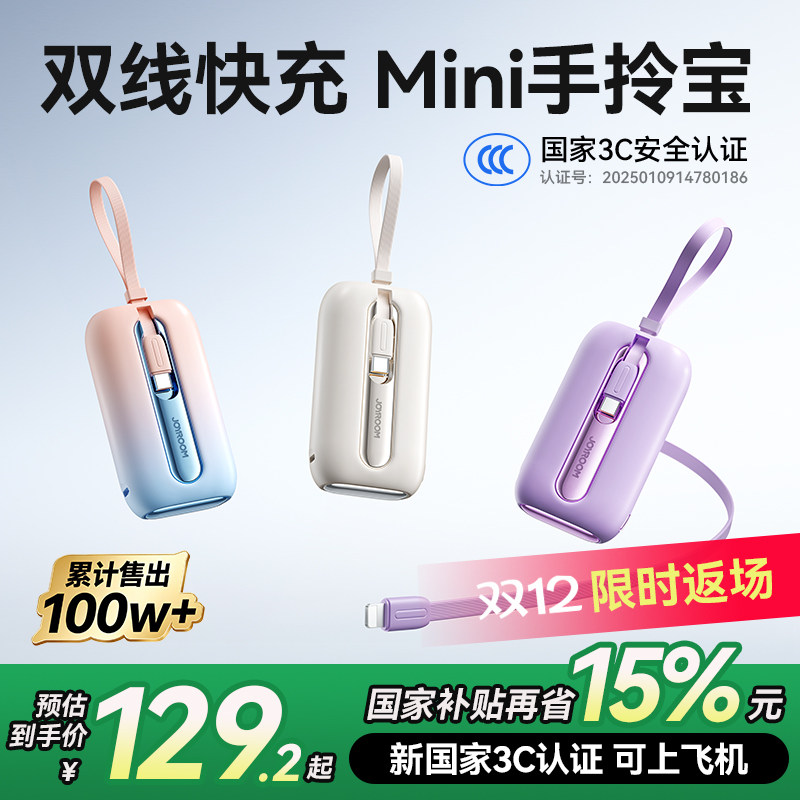 【充电宝3C认证可上飞机】政府补贴15%品胜mini小相机2025新款迷你超薄小巧便携自带线快充适用华为苹果小米