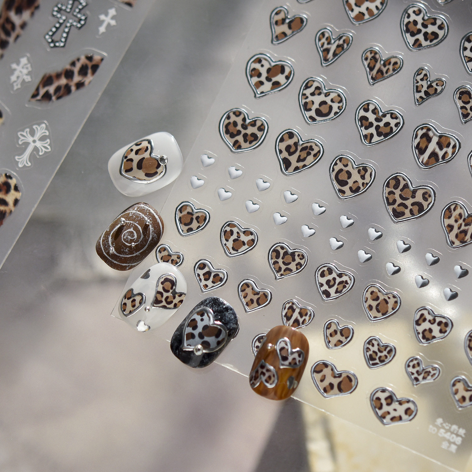 欧美复古豹纹爱心金属立体美甲贴纸装饰指甲电脑手机壳iPad贴画