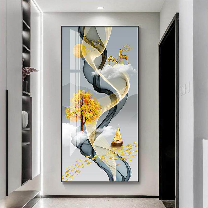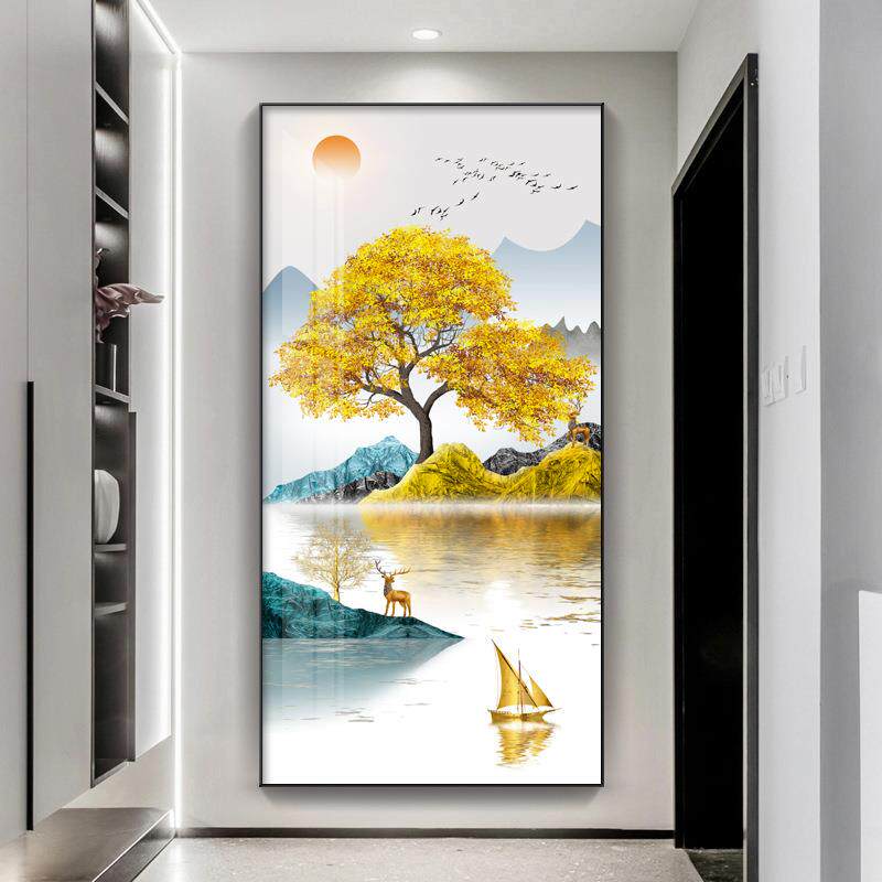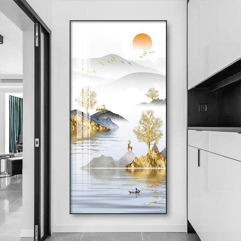 轻奢玄关装饰画现代简约新中式入户客厅走廊过道麋鹿山水高端挂画