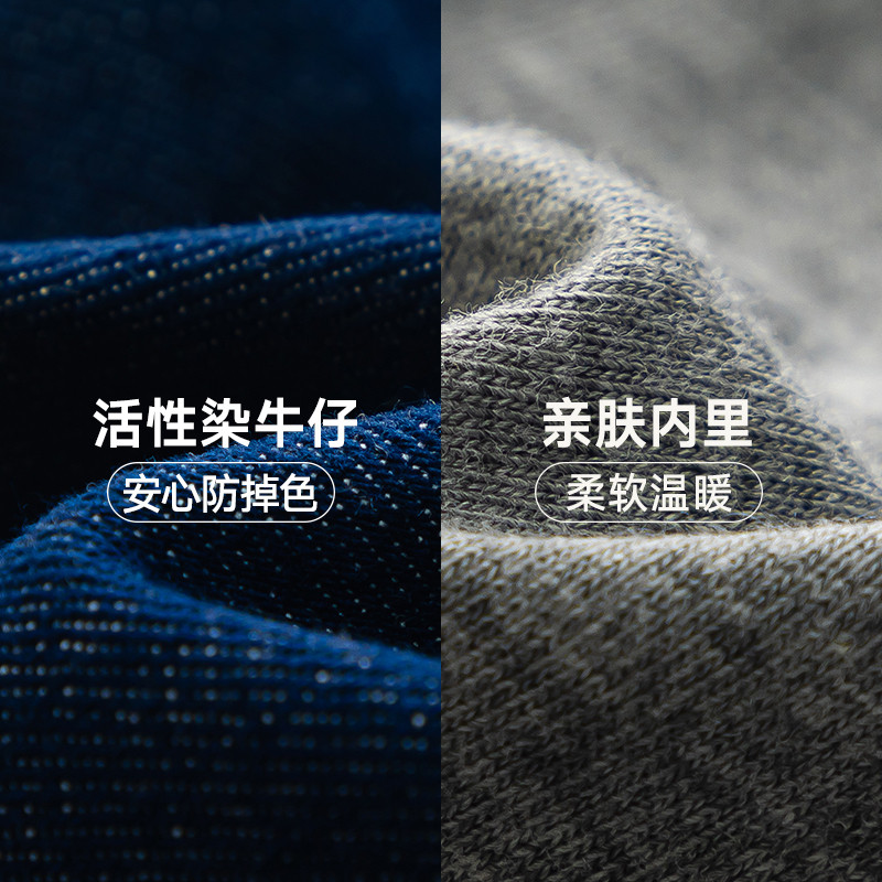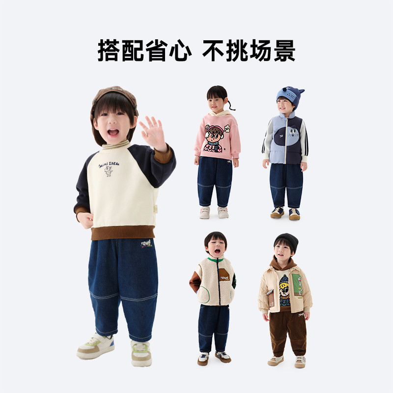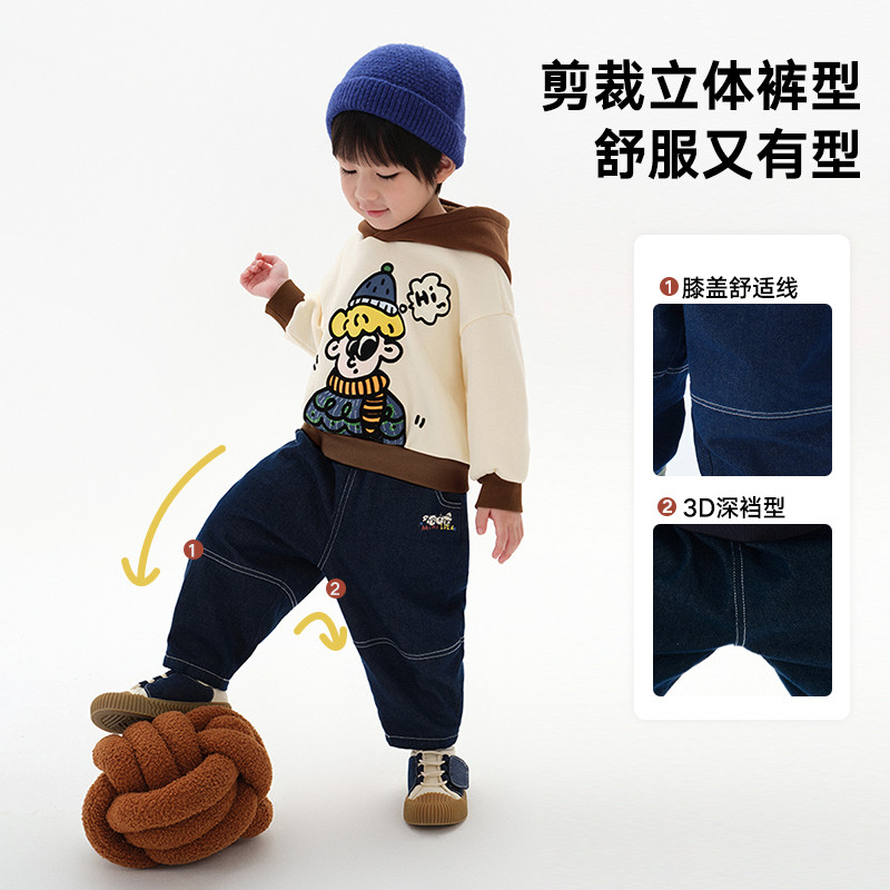 马拉丁童装裤子冬季男小童撞色设计趣味印花加绒牛仔长裤