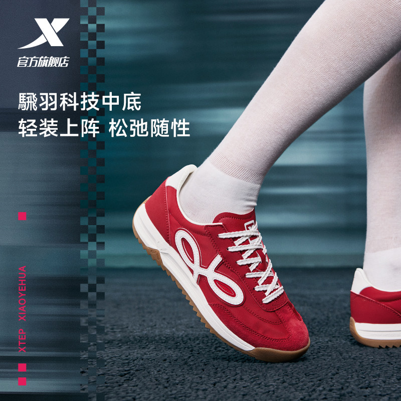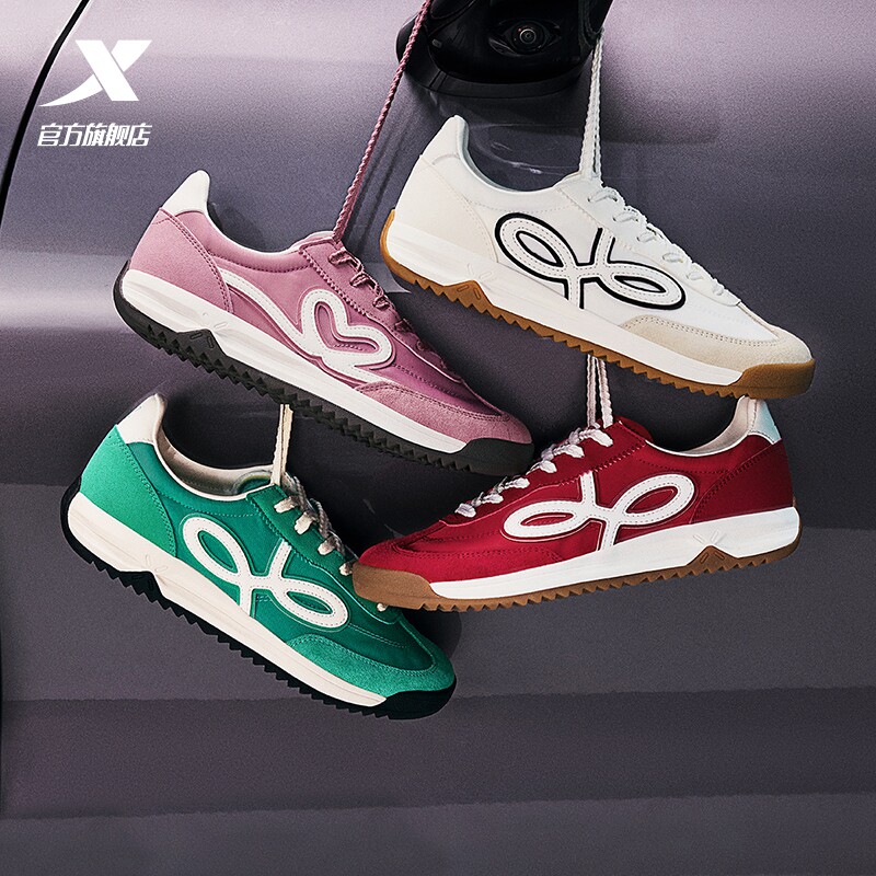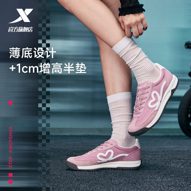 特步小野花丨休闲鞋女鞋冬季新款复古德训鞋薄底赛车鞋轻便运动鞋