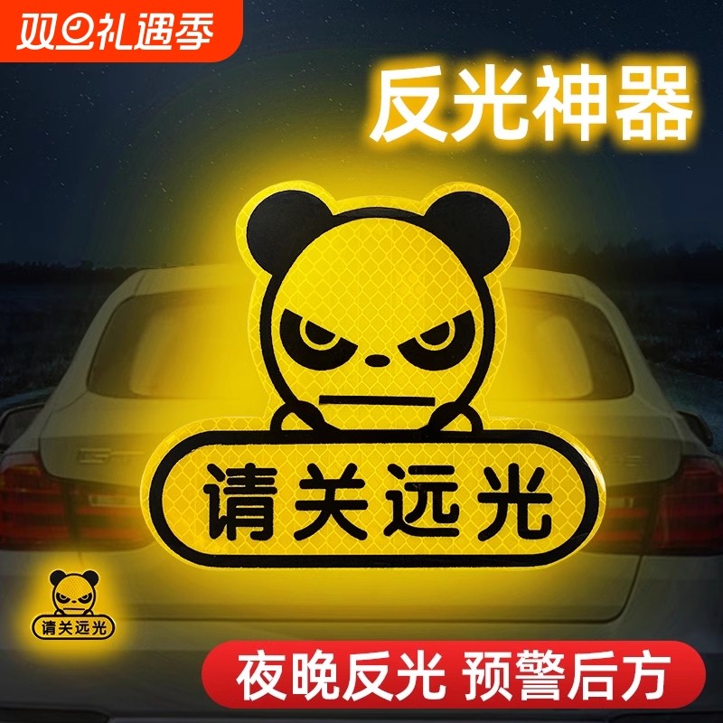 远光狗克星反光贴请关远光车贴夜间保持车距实习划痕遮挡贴纸磁吸