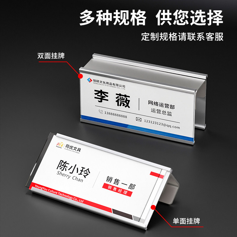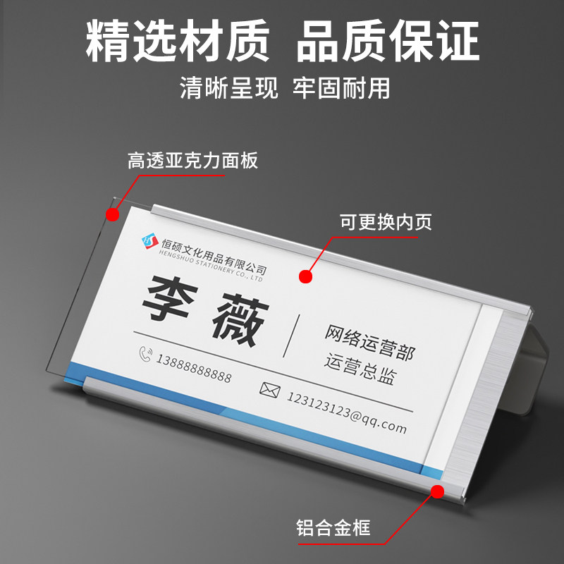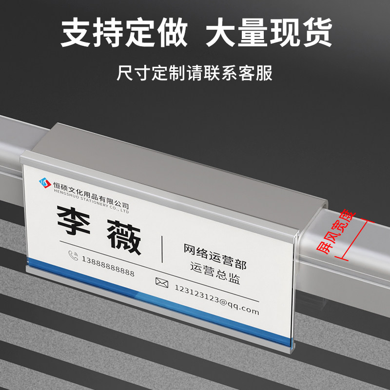 铝合金工位牌悬挂式单双面烤漆亚克力职位牌屏风挂牌办公桌卡槽可更换员工座位牌办公室部门岗位牌姓名牌定制