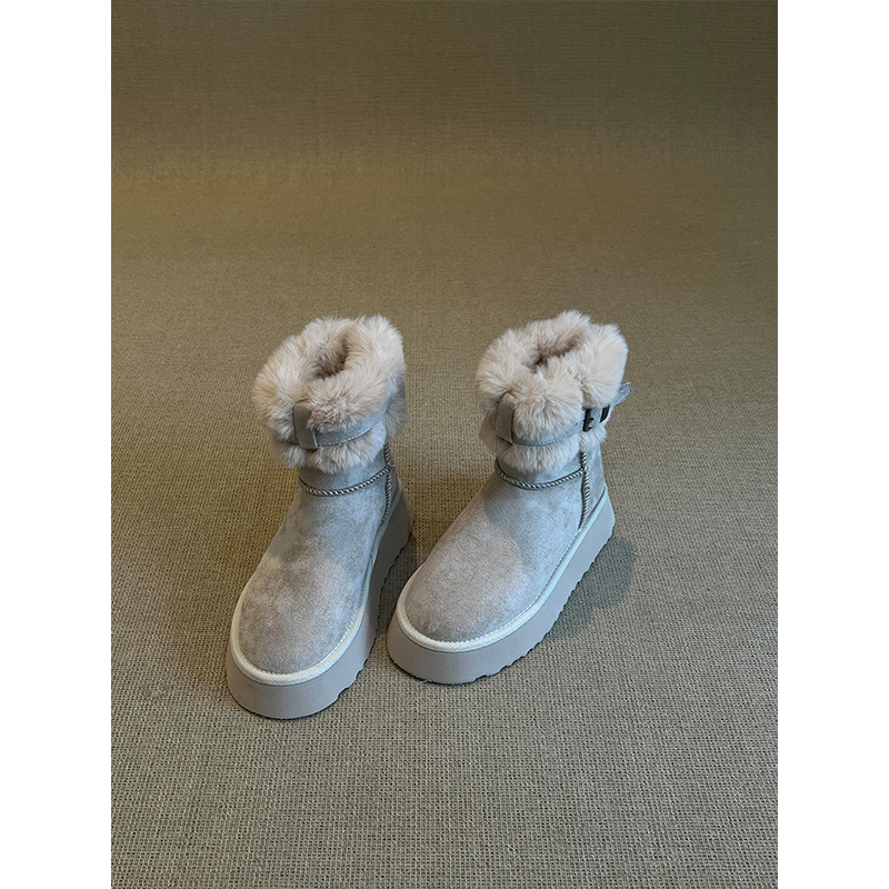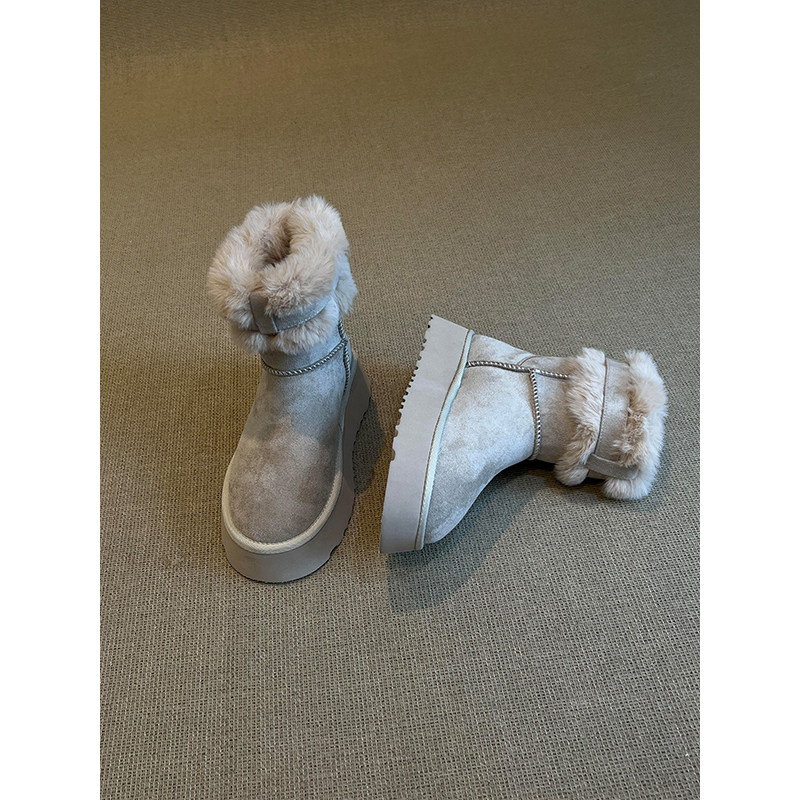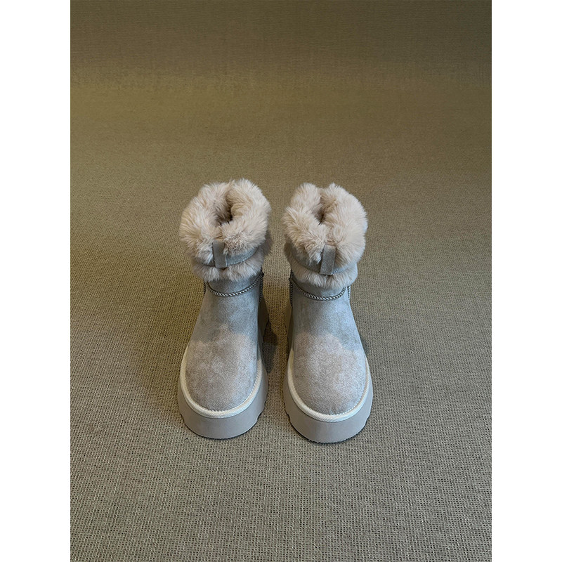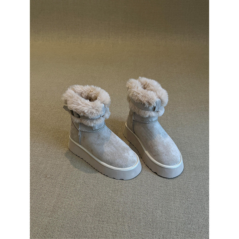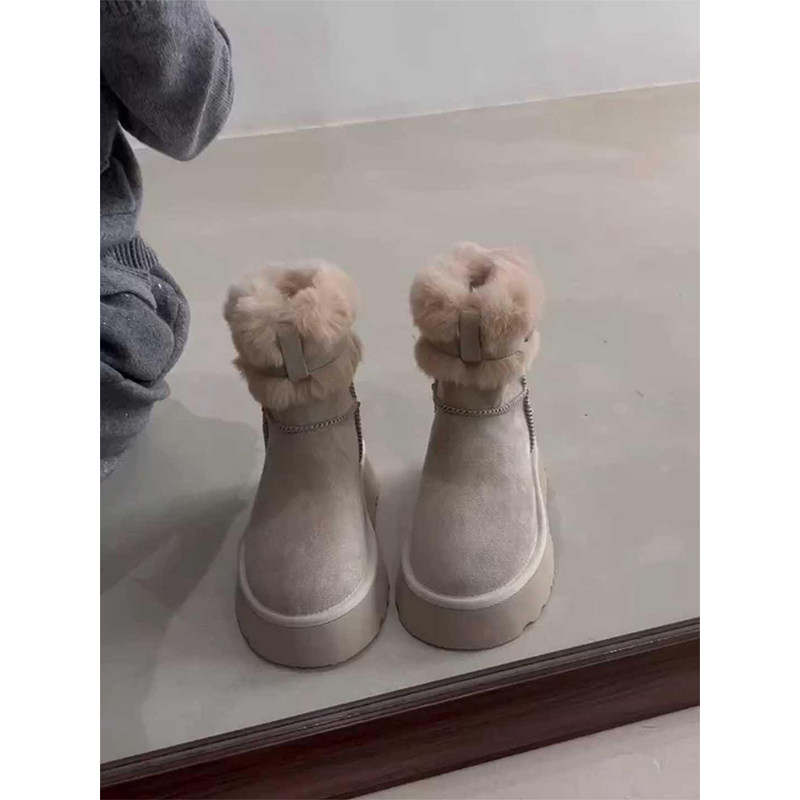 miu家厚底雪地靴女冬季真皮短靴羊毛侧拉链增高厚底加绒毛毛棉鞋