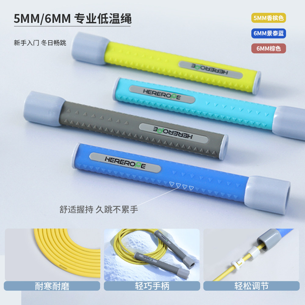 HereRope -10-10度低温跳绳 5-10mm运动耐寒 硅胶手柄 速度跳绳