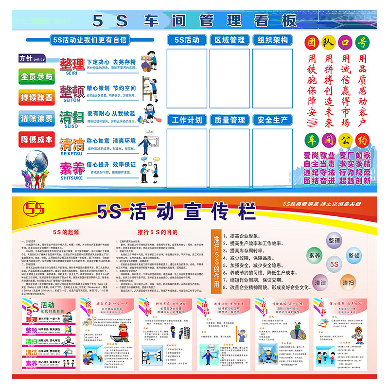5S 6S 7S 8S车间质量管理看板展板2021安全生产月宣传栏挂图工厂车间消防安全标语主题海报清洁清扫整理墙贴