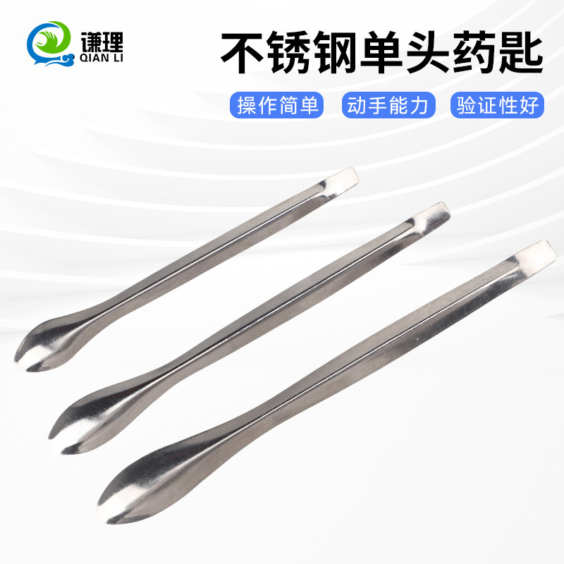 塑料药匙不锈钢药勺加厚单头双头取样勺微量试剂粉末加长勺子化学实验室用教学仪器器材小勺大头小头耗材