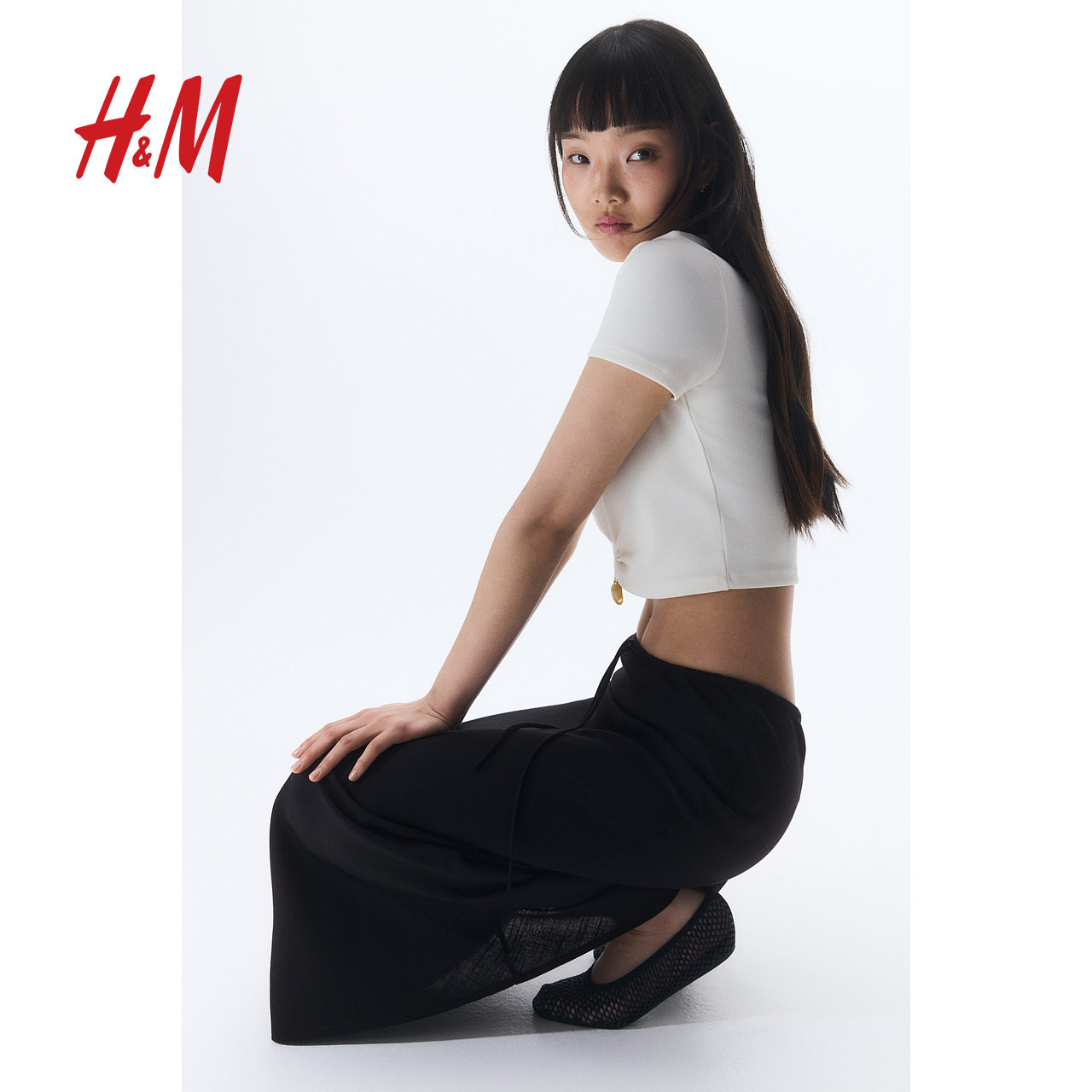 HM女装半身裙2025冬季新款韩系风时尚直筒松紧腰半身长裙1271529