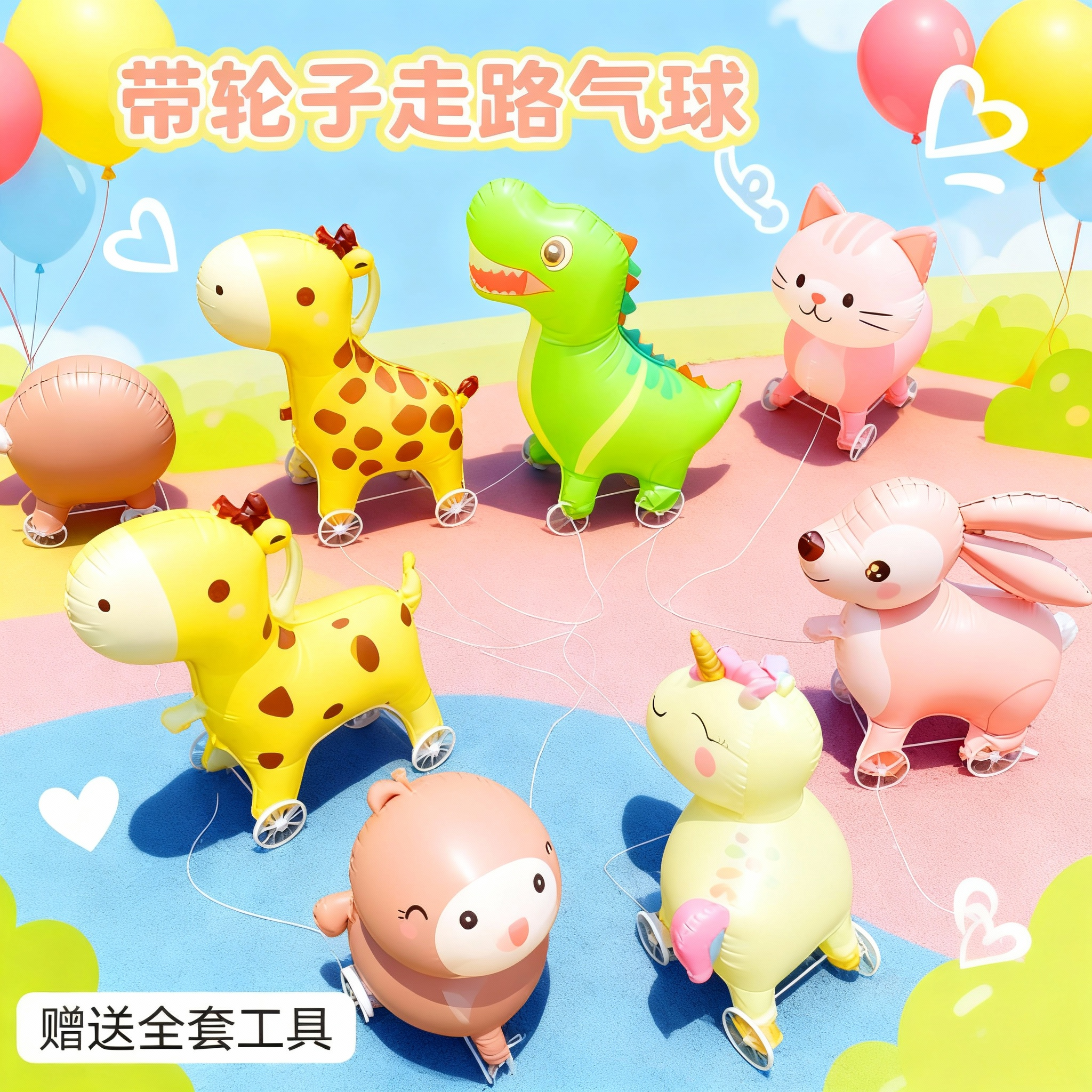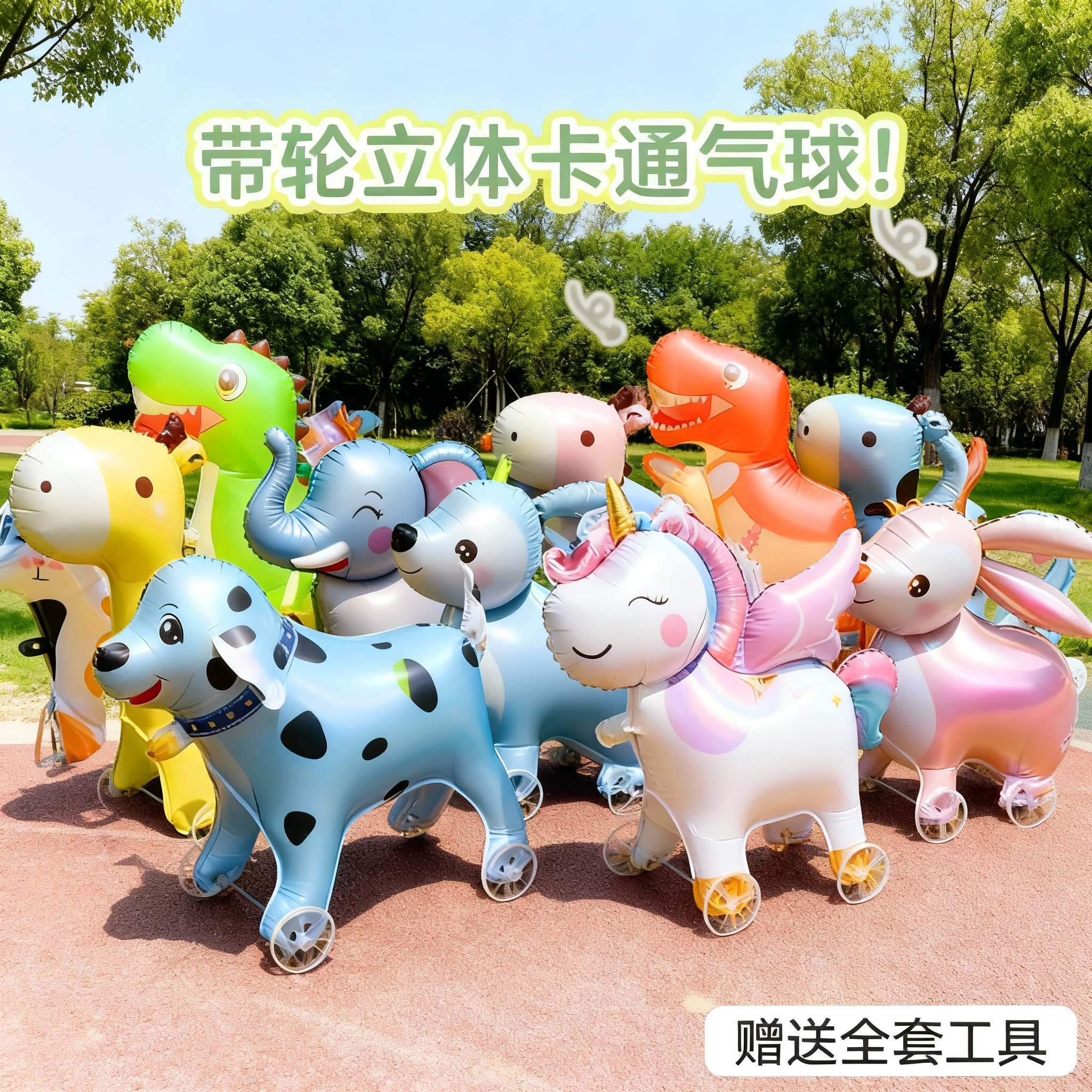 Q版走路带轮子动物立体气球狗卡通儿童生日装饰场景布置户外摆摊