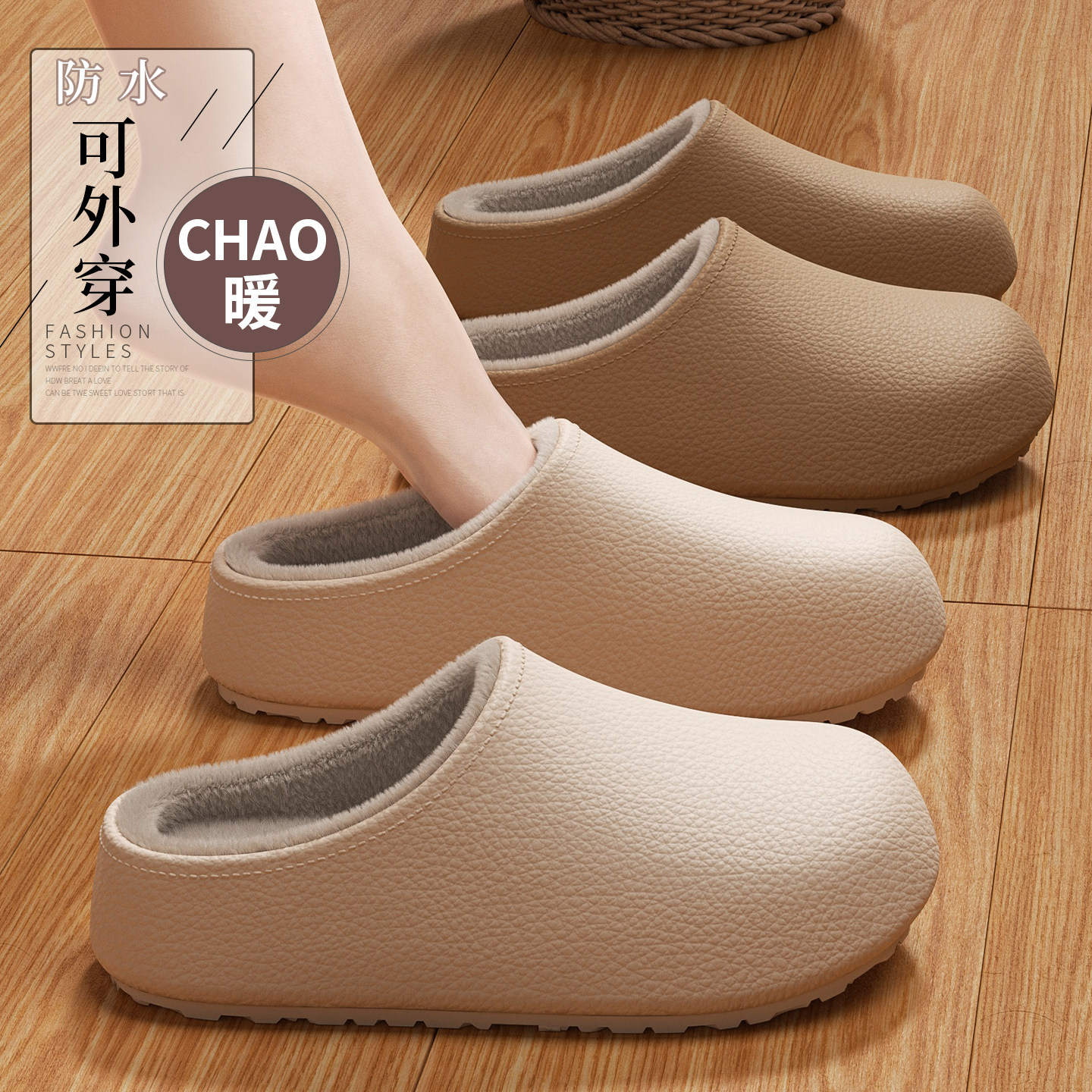 防水棉拖鞋女款2025新款秋冬季保暖防滑包跟可外穿情侣厚底加绒
