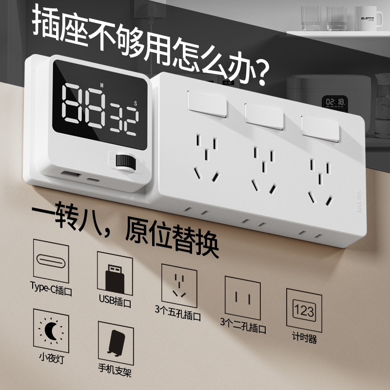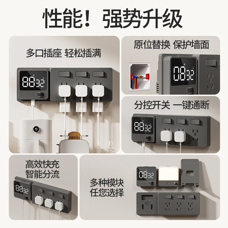 86型扩展式插座原位替换厨房拓展多功能转换器智能插排五孔轨道