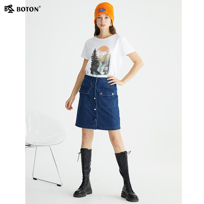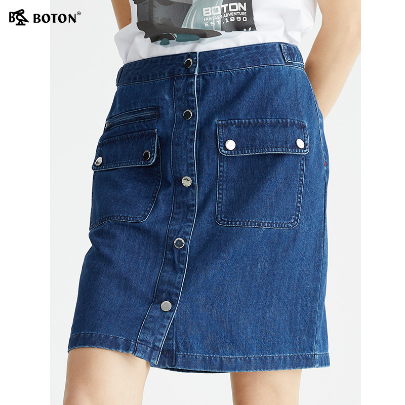波顿高腰牛仔半身裙女2025年夏季新款a字复古百搭时尚包臀短裙子