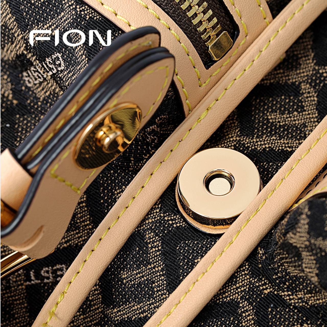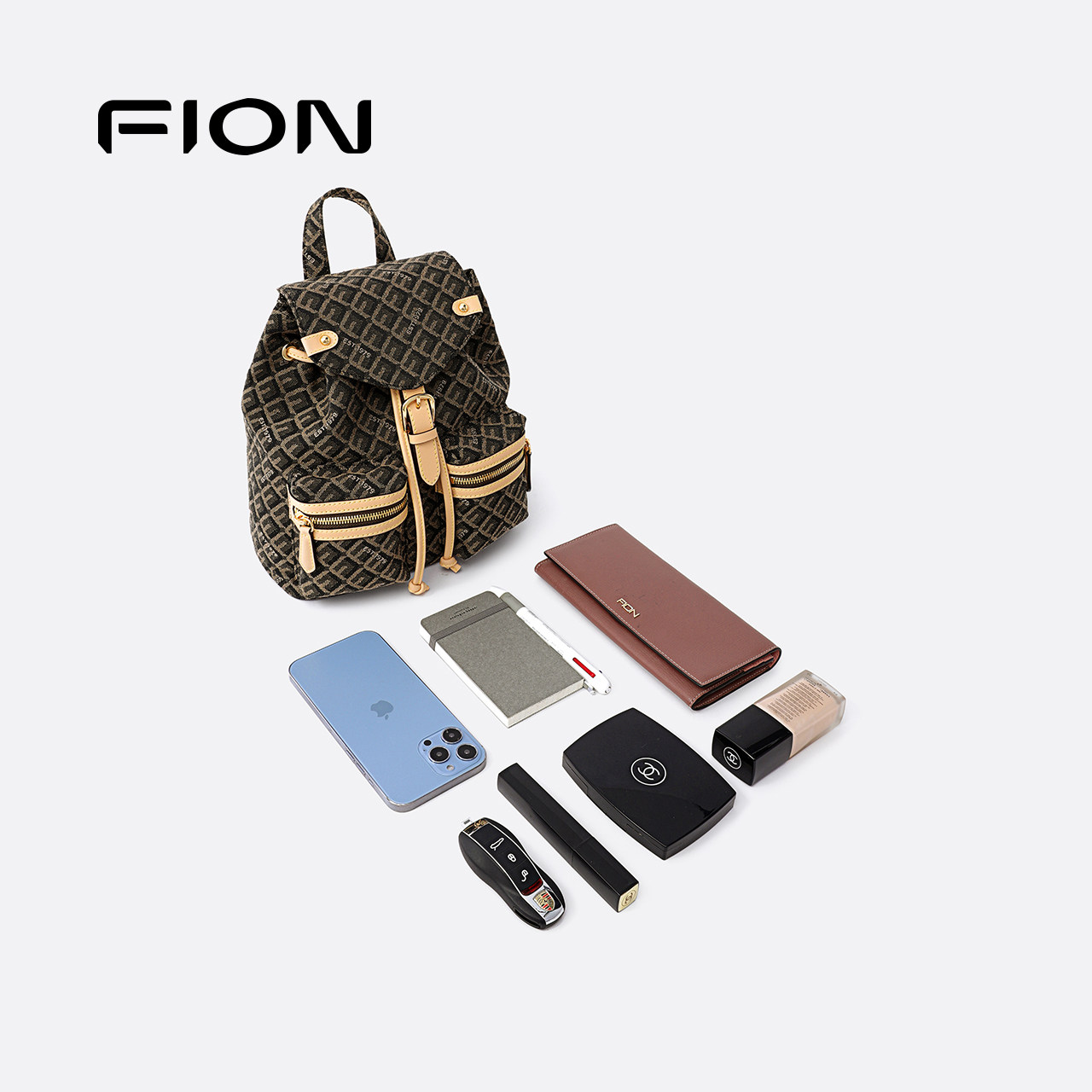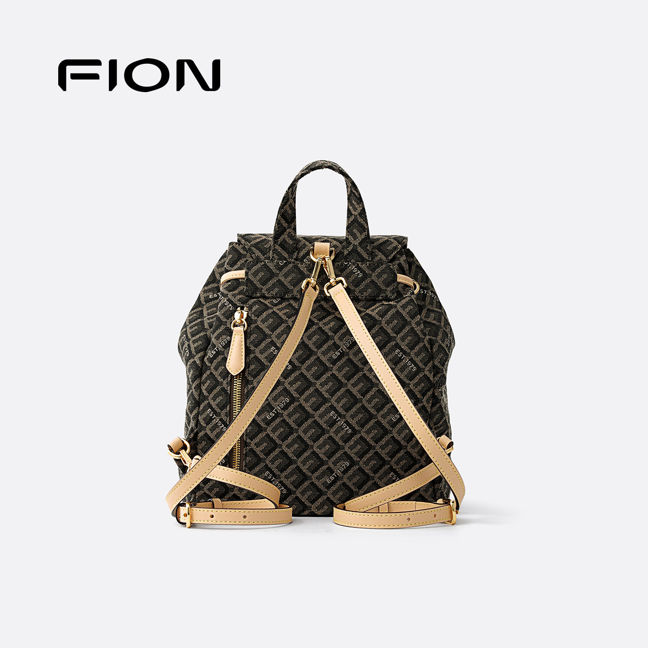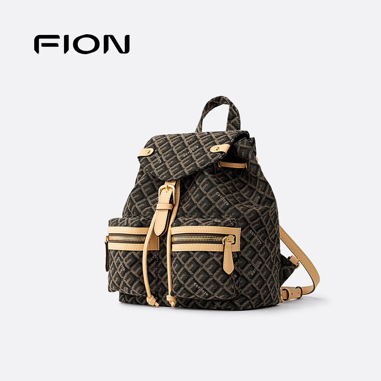 Fion/菲安妮老花双肩背包女2025新款旅游轻便设计感小众旅行包包