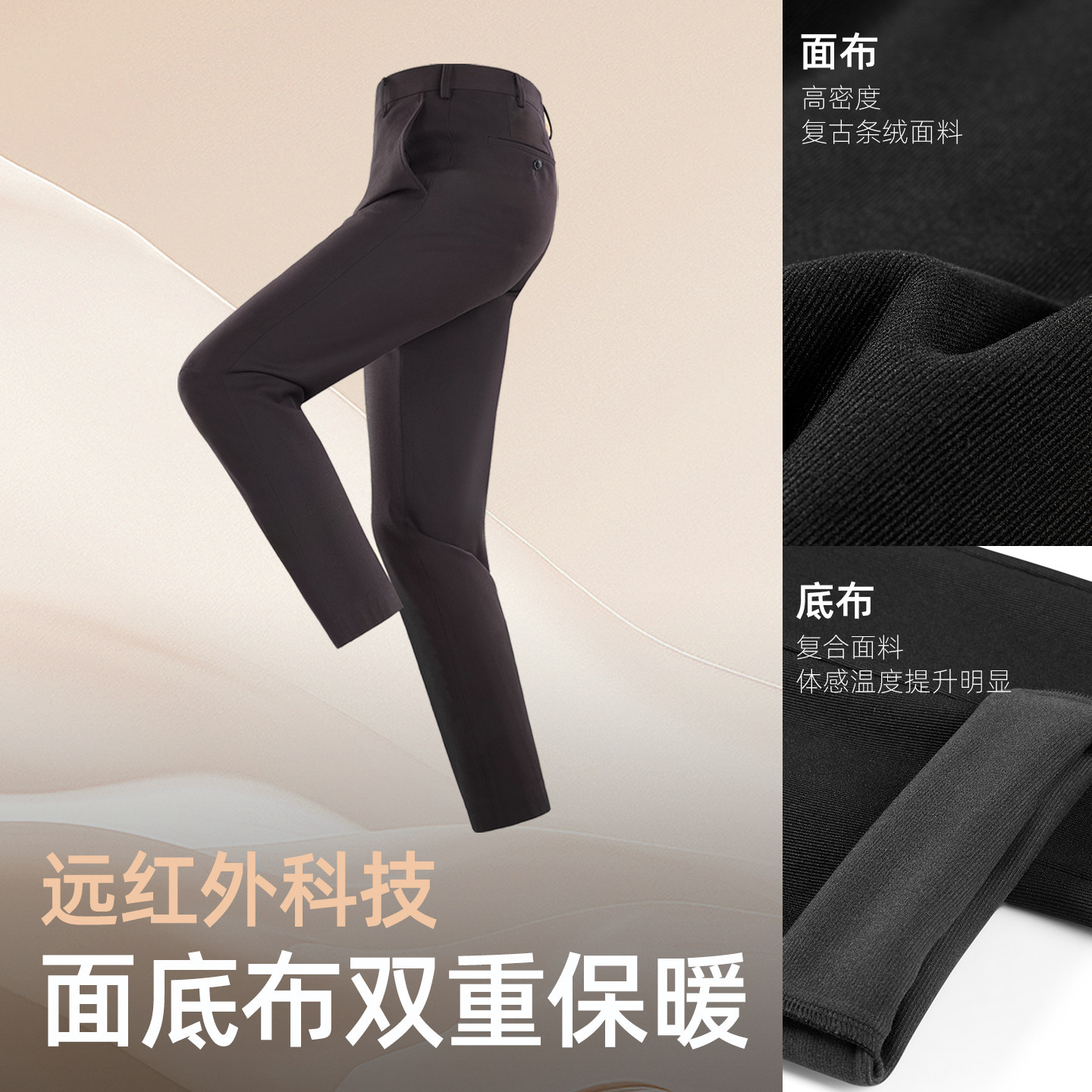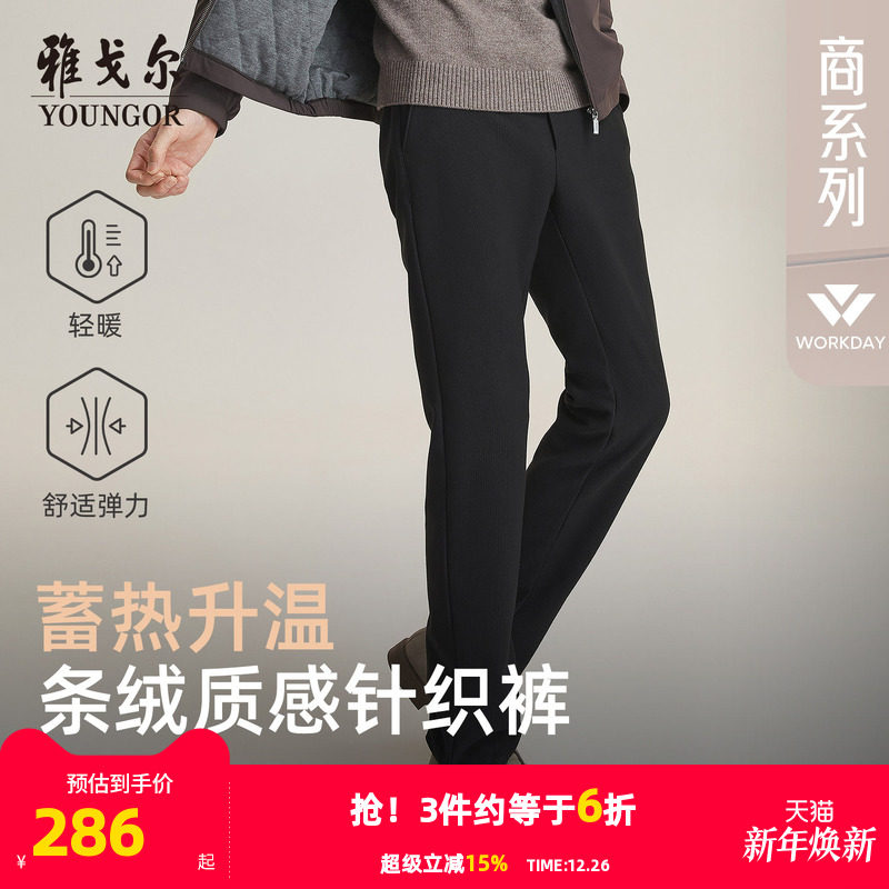 【蓄热保暖】雅戈尔秋25新款休闲裤针织男士轻厚直筒弹力绒面长裤