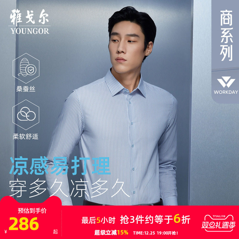 【10%桑蚕丝凉感】雅戈尔秋季新品条纹商务休闲易打理长袖衬衫男