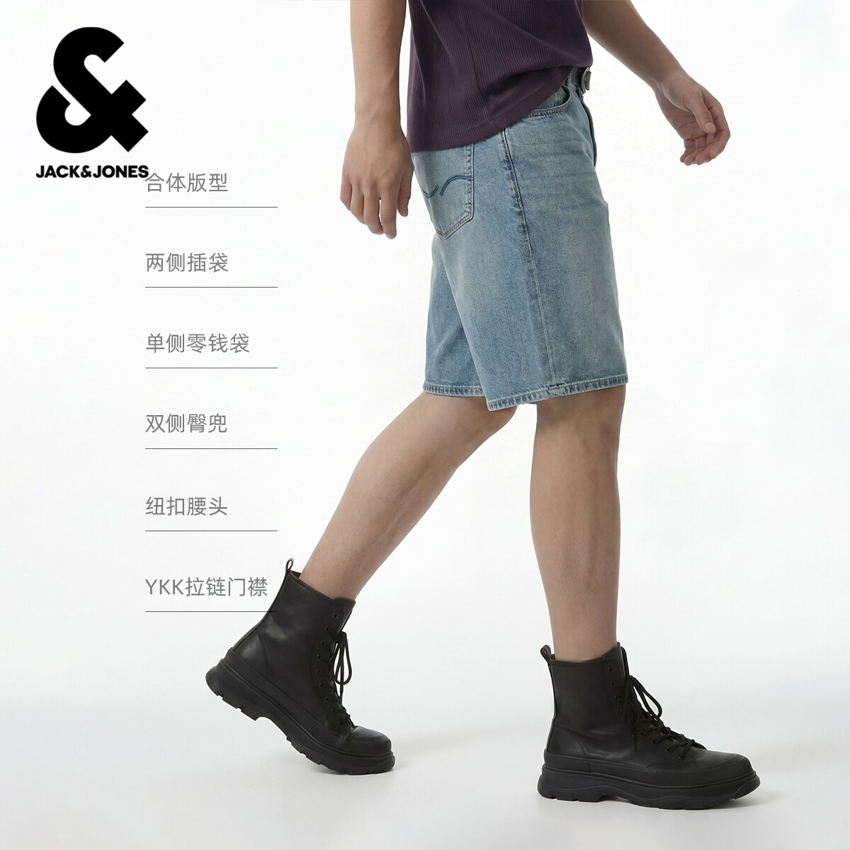 【天丝】杰克琼斯夏季男装牛仔短裤子直筒纽扣腰头微弹舒适亲肤潮