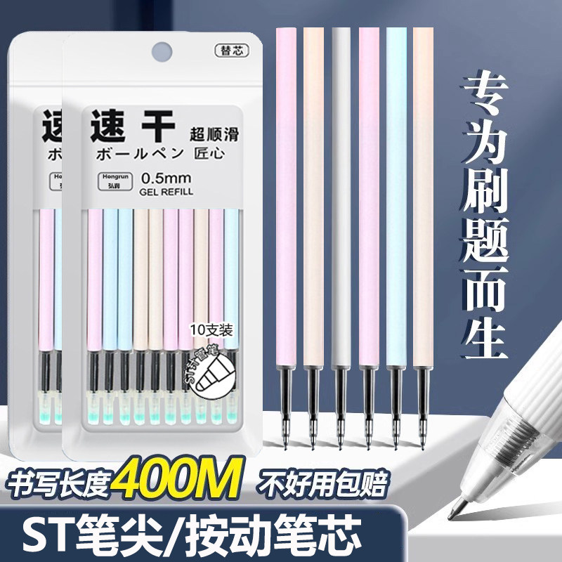 马卡龙系ST按动笔芯黑色0.5mm按动替芯葫芦头学生用高颜值中性笔