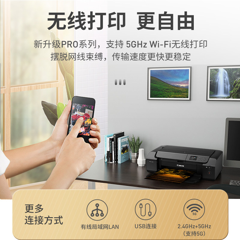 佳能PRO100/200S/310无线彩色喷墨A3+8色10色专业大型照片 相片打印机家用办公wifi铜版纸不干胶摄影照相馆