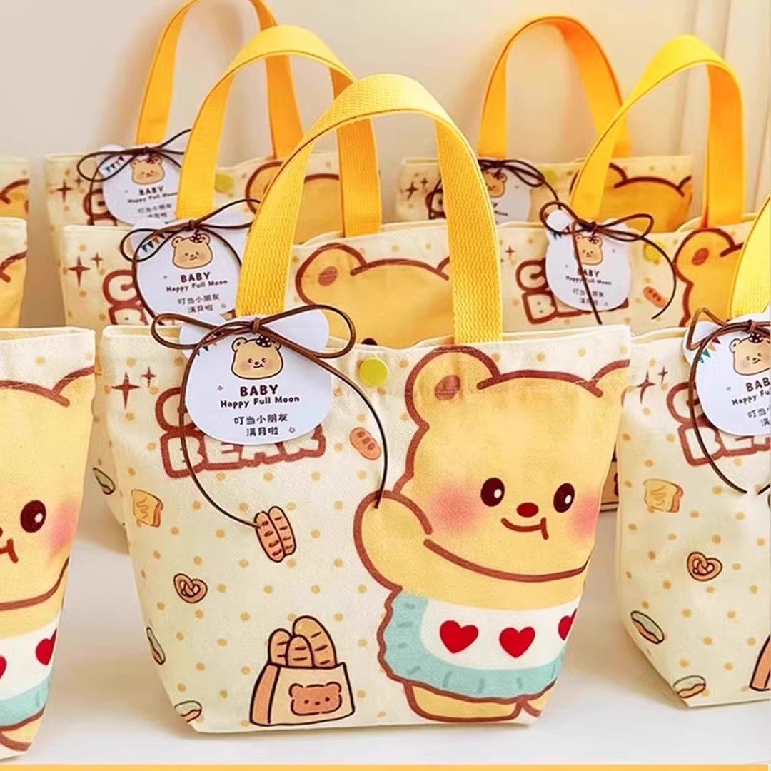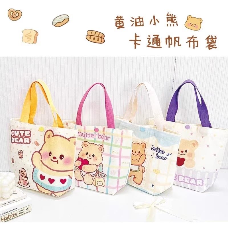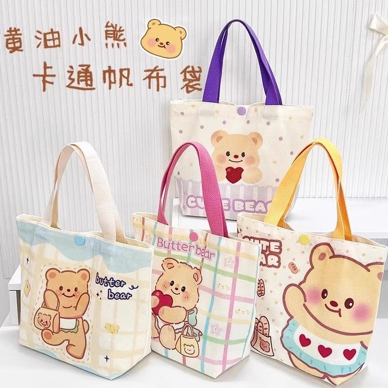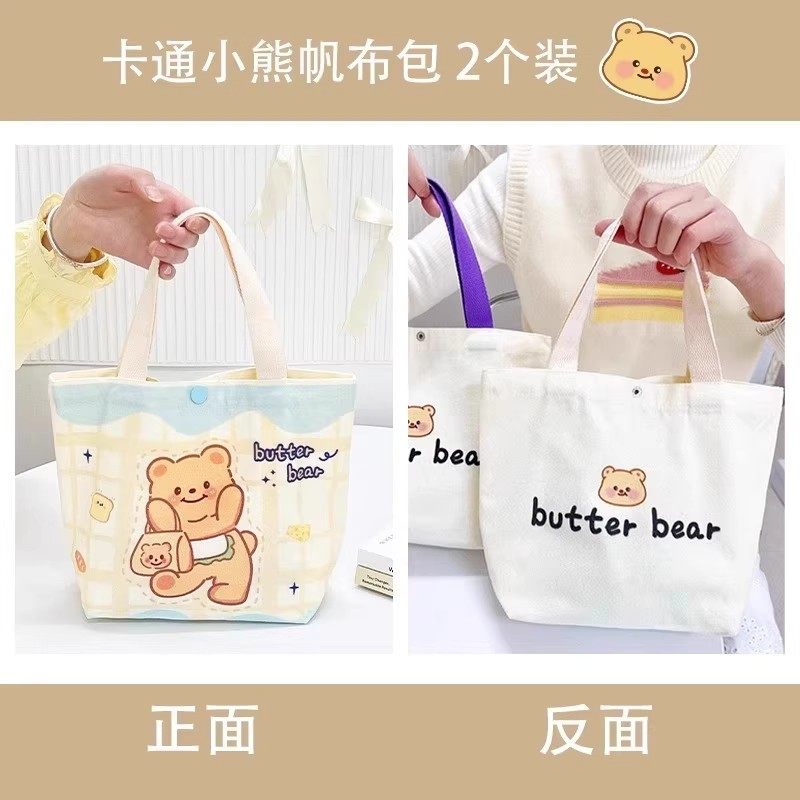新款黄油小熊帆布包小号上班小拎袋可爱迷你学生便当包饭盒手提袋