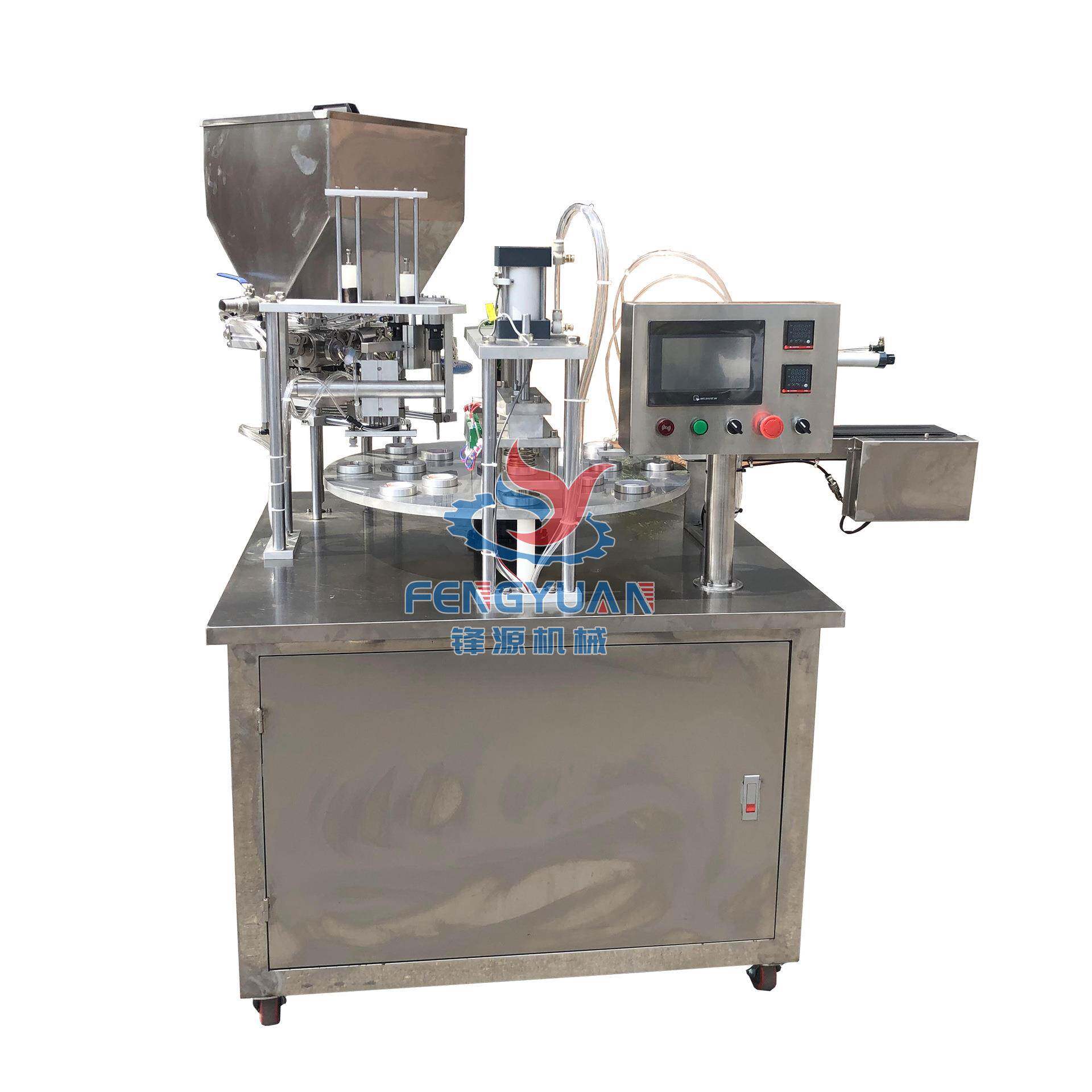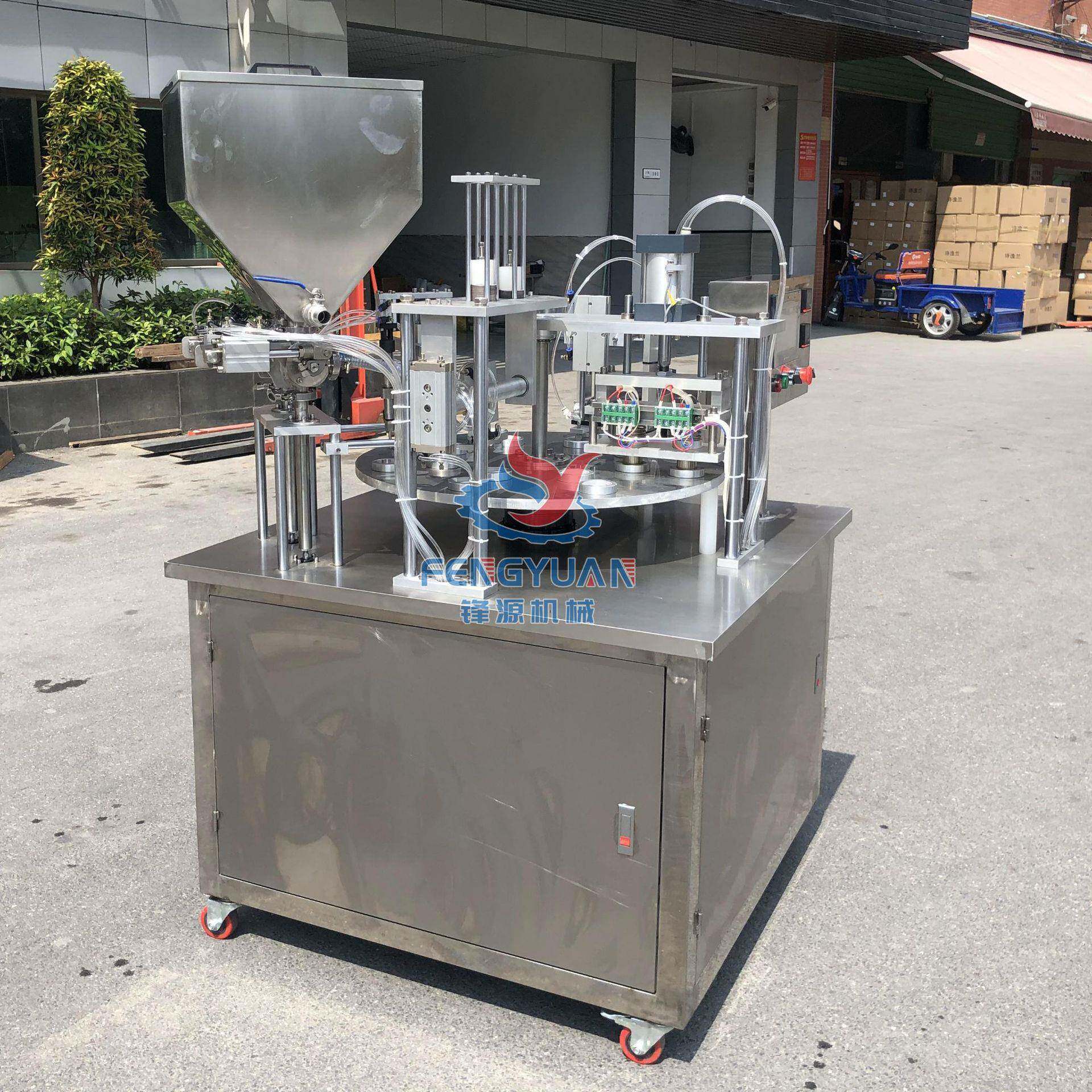 全自动灌装转盘封杯机咖啡胶囊面霜绿豆沙肉酱酸奶液体粉剂封口机